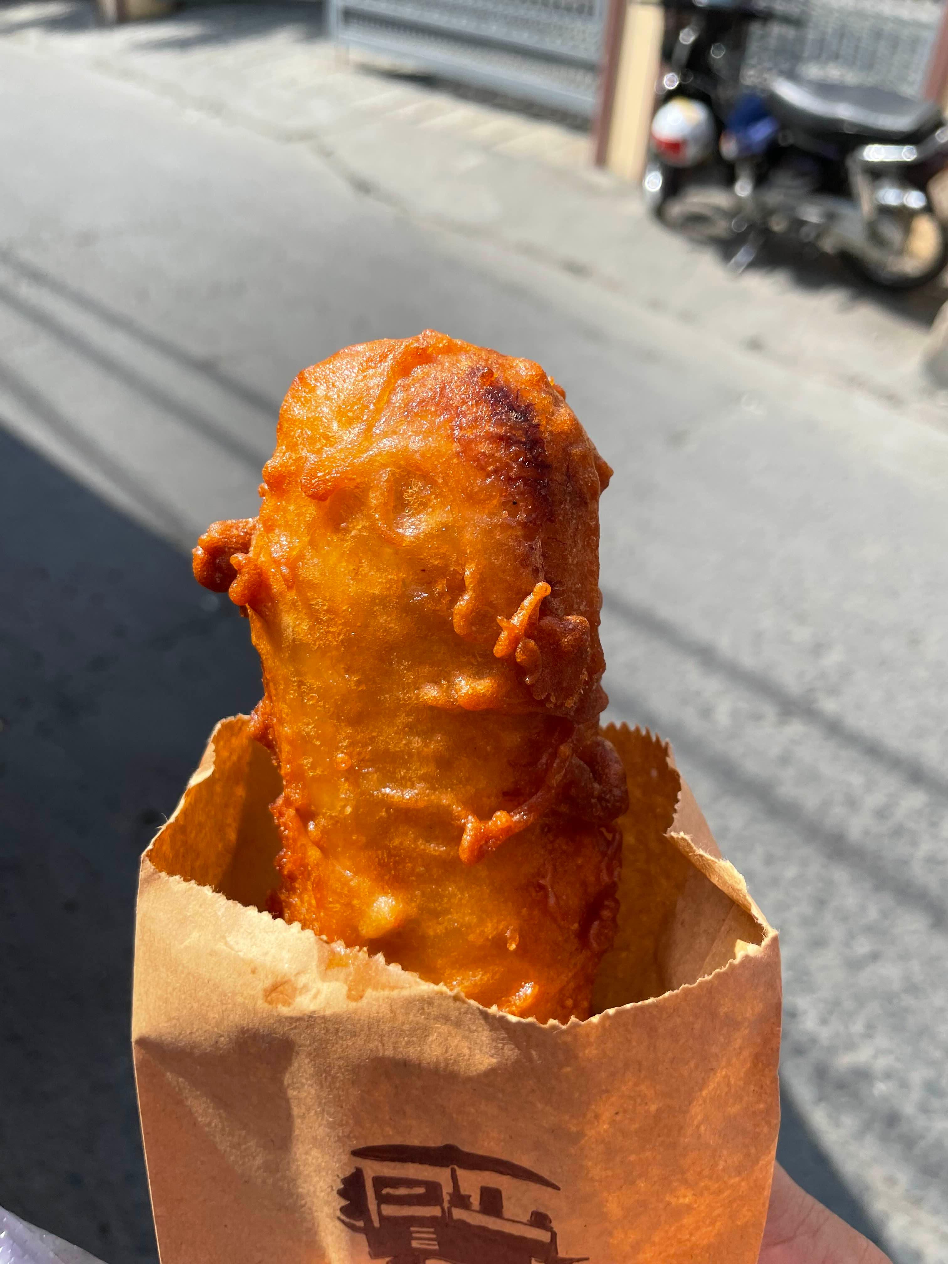 베트남 간식 중 가장 맛나게 먹었던 거!! 다른 곳에서는 작은 바나나 튀김을 판매하는데, 여기는 상당히 크고! 바로 튀겨주니... 바삭하니 맛남!