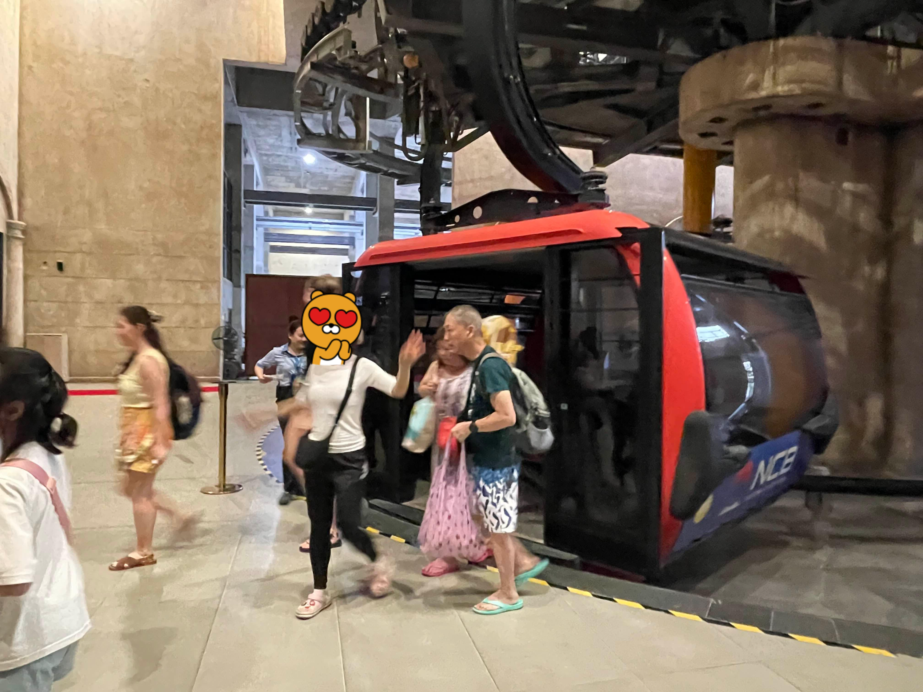 나가는 케이블카를 탑승하러 대기 중이다.