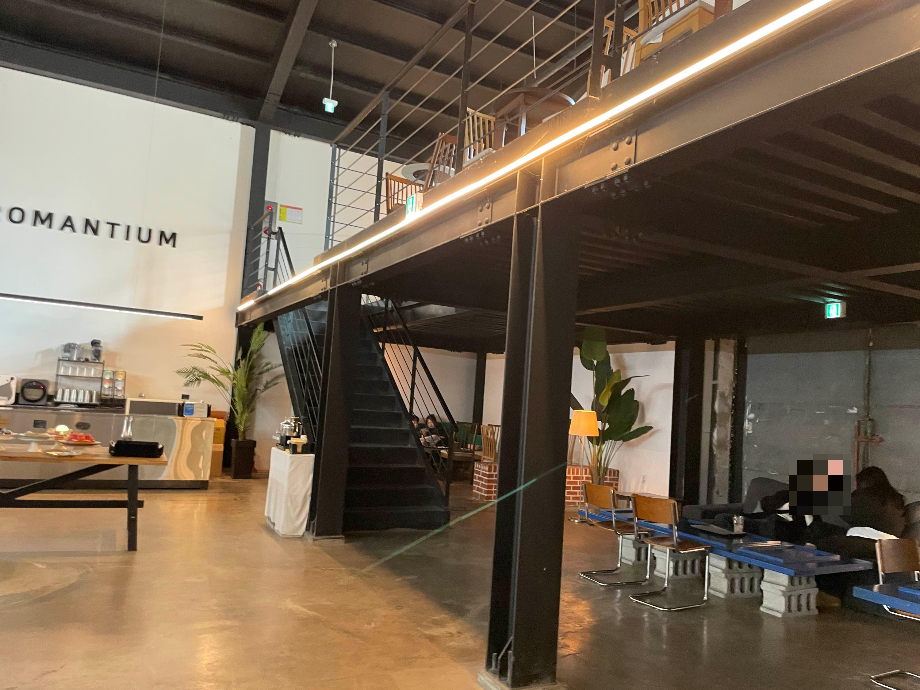 카페는 상당히 높은 층고로 개방성이 좋더군요.