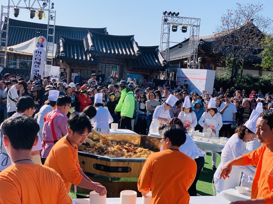 전주비빔밥 축제의 하이라이트 대형비빔밥을 보기 위해 방문해 보았습니다. 사실 전주비빔밥 축제의 하이라이트 5,000인분 대형 비빔밥이지만, 5,000인분 비빔밥은 평일 낮 시간에 이루어지는 행사다 보니 pass~ 아쉬운 대로 약간 작은? 사이즈 1,000인분 대형비빔밥을 보고 먹으러 방문했습니다.