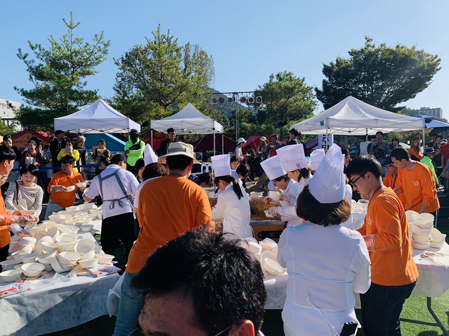 1,000인분 대형 비빔밥 행사를 참여하기 위해 도착했을 때 이미 많은 사람들이 모여있었네요. 체험?이라기 보다 대형 비빔밥 비비는 거 구경하고, 먹는 게 전부지만~^^ 대형 비빔밥은 비비는 거 보는 것만으로도 군침이 돌기 시작하더군요. 비빔밥을 다 비비고서 담을 그릇을 준비하시는데, 1,000인분이다 보니 그릇도 상당히 많이 준비하시네요.
