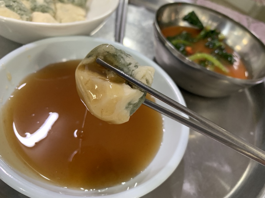 쑥꿀레는 그냥 먹는 것보다는 초정에 찍어서 먹고, 마무리로 열무김치를 먹으니 조합이 좋더군요. 쑥꿀레는 쑥떡과 팥을 함께 손으로 버무려 만든 미니 주먹밥 모양의 떡이다 보니 국물있는 열무김치와 잘 어울리네요. 다만, 양이 적다 보니(떡이 이정도 가격에 이 정도 양이면 적은 것은 아니지만) 좀 아쉬웠지만, 아침으로 백반집에 들러야 하기에 1인분으로 마무리를 했습니다.