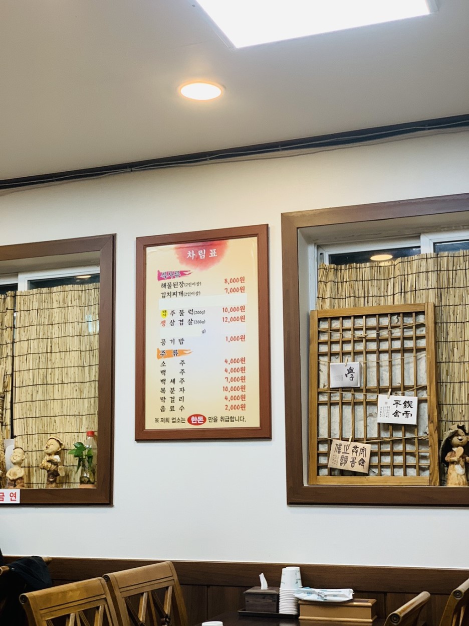 약 4년 전에 방문하여 해물된장찌개를 너무 맛있게 먹었던 기억이 있어서... 근처 지나가다 예전 해물 된장이 생각나서 들렸습니다. 식당 내부도 바뀌었고, 된장찌개 맛도 약간 변했네요.