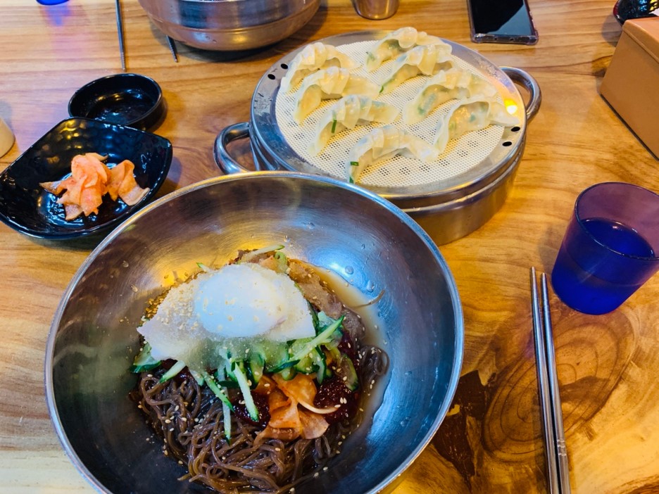 냉면과 함께 만두가 함께 나옵니다. 냉면 1개에 만두 4개씩 나오더군요. 만두는 한입에 먹을 정도로 크기가 조금 작았네요. 만두 면피가 얇고 만두소 육즙이 적당히 있어서 한입에 먹기 좋았네요. 비빔냉면은 양념장은 약간 싱거웠네요. 만두는 맛있었는데, 냉면은 좀 아니었네요. 좀 더 매콤했으면 좋을 거 같더군요. 냉면은 양이 좀 적어서 면사리를 추가했습니다. 면사리 추가해도 가격을 동일합니다. 사리추가하면 함께 나온 양념장을 많이 넣어서 먹으니 그제서야 비빔냉면 맛이 괜찮아 지더군요.