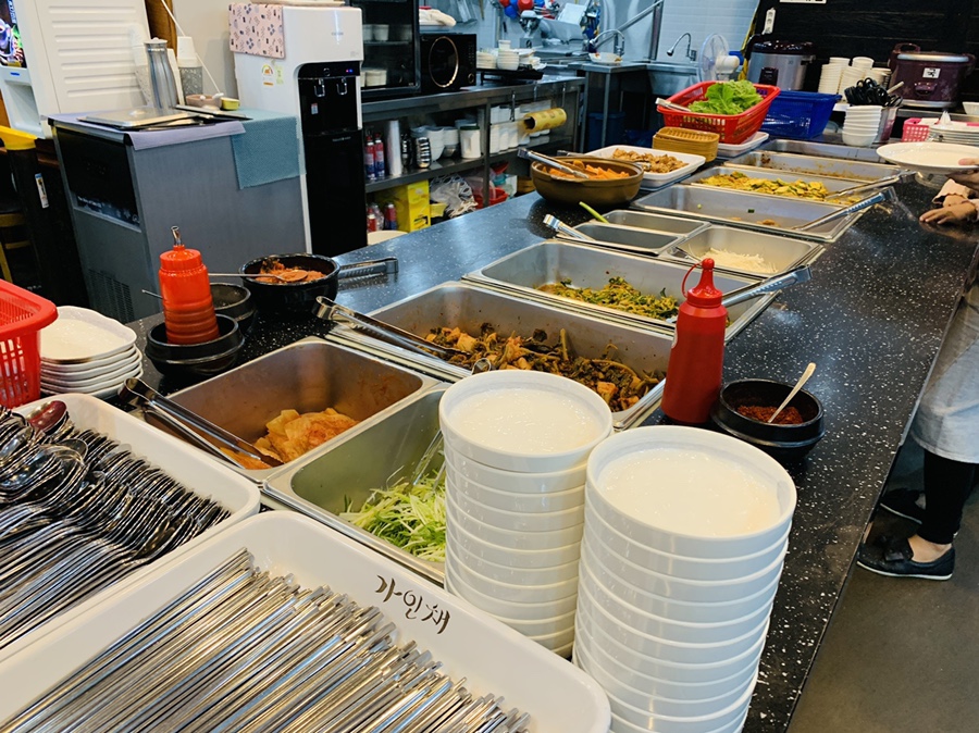 점심에 6,000원 백반 무한리필을 운영하고 있습니다. 저녁에는 백반 음식과 대패삼겹살을 9,900원에 무한으로 먹을 수 있습니다. 9,900원에 대패삼겹살 그리고 백반 반찬을 무제한 먹을 수 있는 곳인데, 왜 손님이 많이 없는지 궁금해지더군요. 서빙은 불판과 대패삼겹살을 주시고, 다른 것들은 셀프바를 이용하게 되어 있더군요.