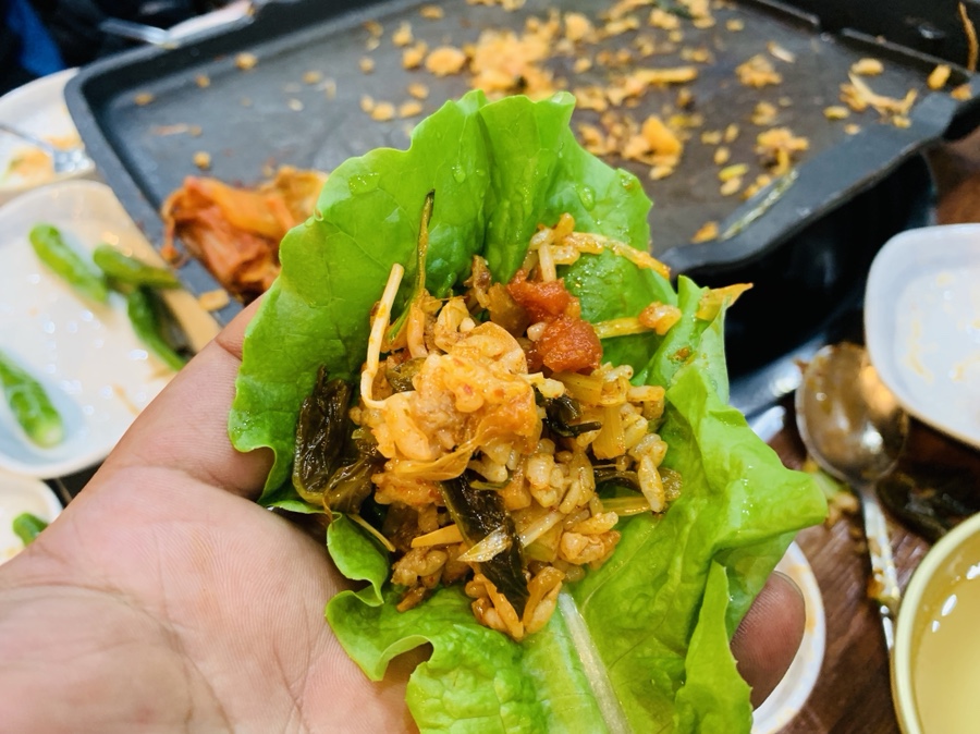 얼큰한 국물과 느끼한 고기와 함께 먹을 수 있는 쌈 재료가 생각이 나는 식당입니다. 대패삼겹살을 9,900원에 무한리필 먹을 수 있어서 가성비는 좋은 곳이네요. 다만, 술 마시기에는 좀 아쉬움이 남고 가볍게 고기 먹기에는 좋은 곳이네요.