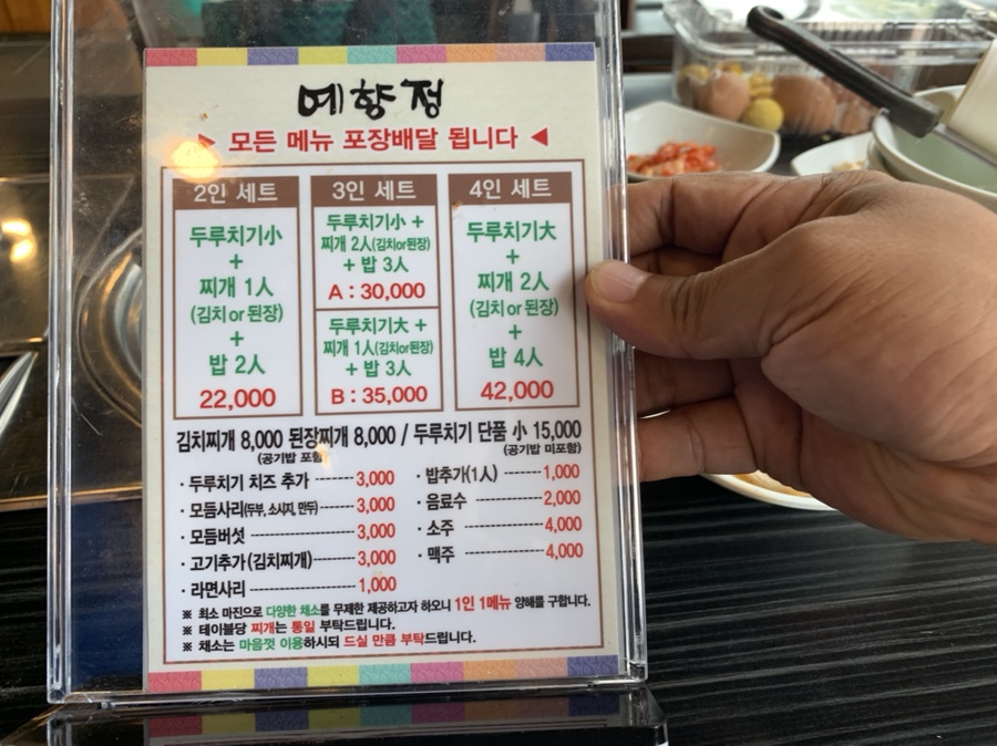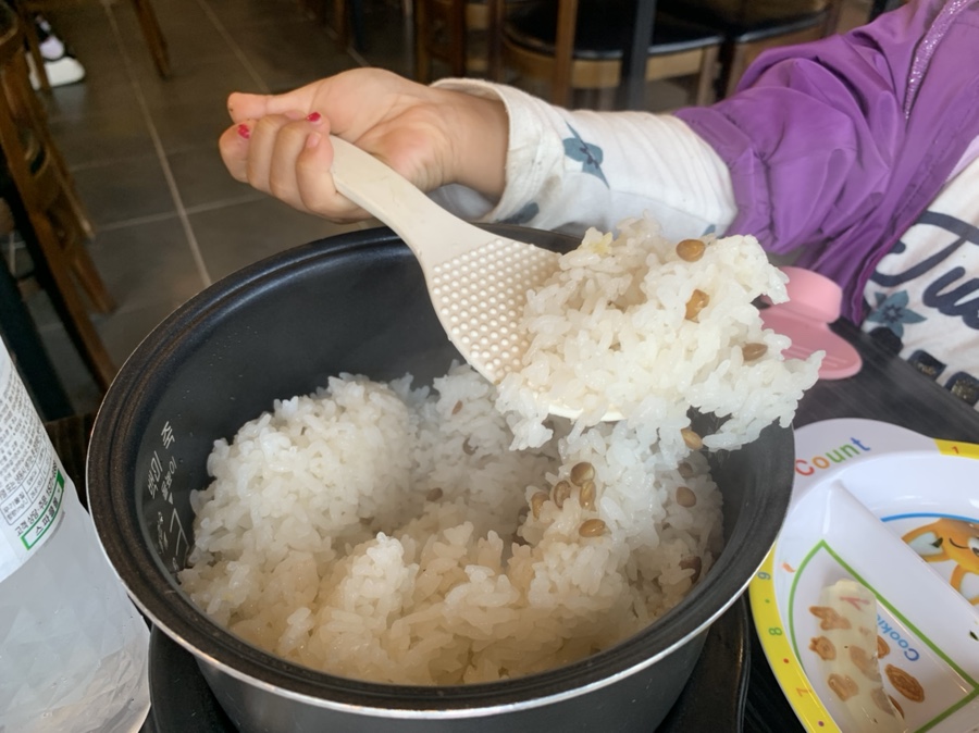 주문은 3인 세트로(두루치기와 김치찌개 또는 된장찌개) 30,000원으로 주문했습니다. 메뉴 구성은 그렇게 나쁘지는 않더군요. 3만 원에 두루치기와 김치찌개 거기에 쌈 채소도 다양하게 먹을 수 있으니~ 식당 입구에 밥솥이 진열되어 있는데.... 여기에 밥을 직접 해서 나오는데, 밥을 추가하면 미리 만들어진 밥솥에서 밥을 추가해주시네요.