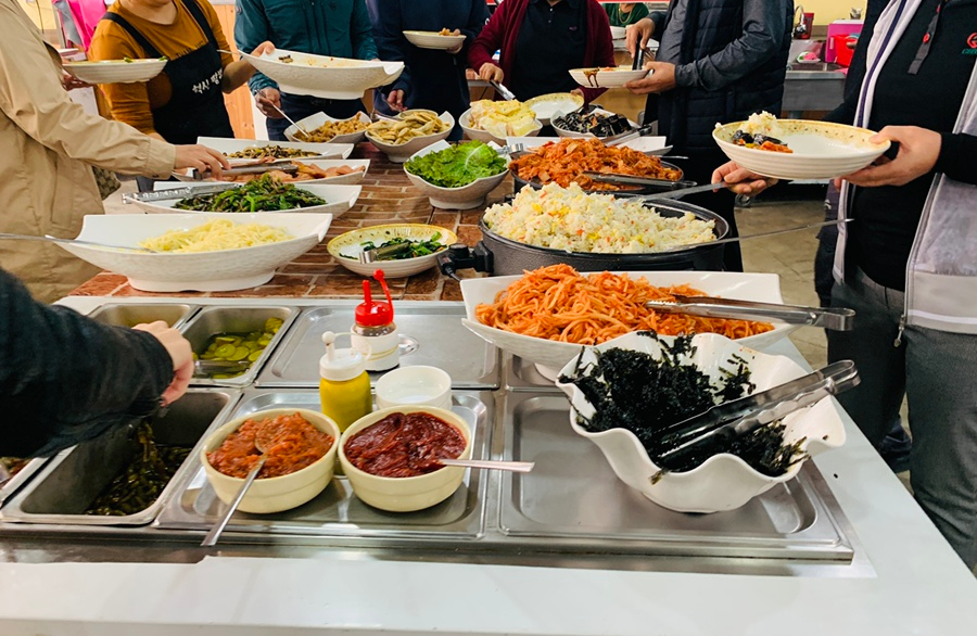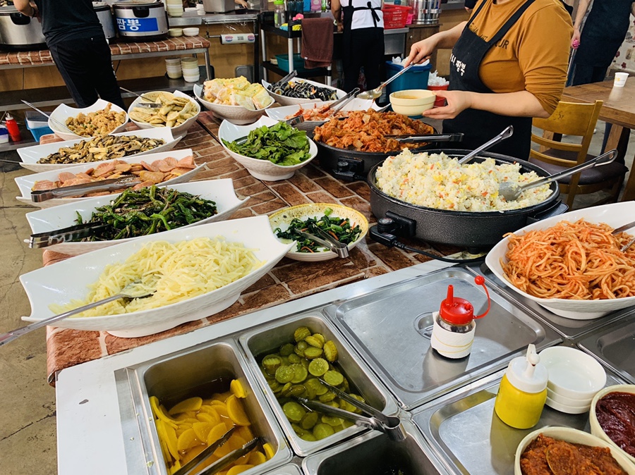 가격은 성인 6,500원, 초등학생은 5,500원으로 선불로 12,000원을 계산하고 자리에 앉았습니다. 식당에 들어서서 메뉴판을 찾아보니 메뉴판이 안 보이네요. 방송 보고 점심에는 한중식 식판 집을 하고 저녁에 중식당인 줄 알았는데, 점심에만 하는 식판 집이었네요.
