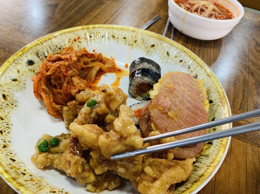 가장 아쉬웠던 부분이.... 이 짬뽕이었네요. 미리 조리한 짬뽕이 전기밥솥에 들어가 있더군요. 짬뽕은 좀 매콤한 국물인데.... 밥솥에 보관되어서 국물 맛이 좀 덮덮한 맛이었네요. 탕수육도 별로, 짜장면도..... 이 중에서 가장 맛있게 먹은 게 볶은 김치가 가장 맛있게 먹었네요.