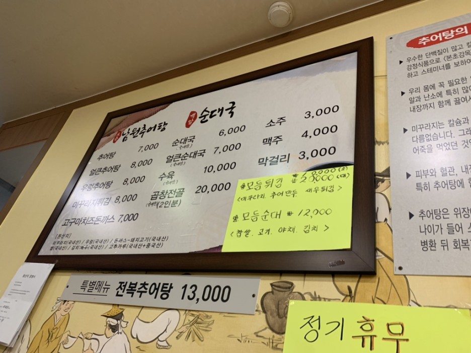 예전에 저녁식사를 위해 자주 방문했던 식당입니다. 순대국과 추어탕을 번갈아가며 저녁식사를 해결했던 식당이네요.