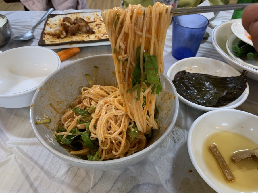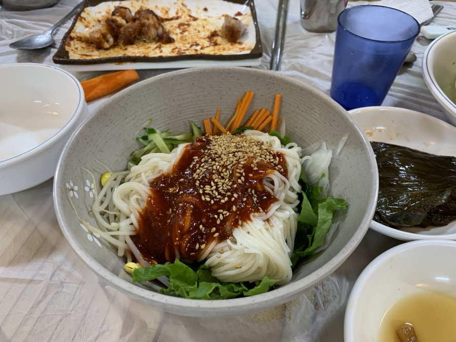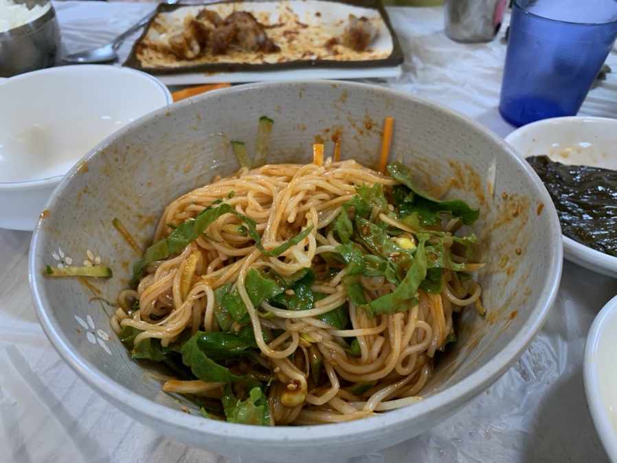 가운데 집에 방문하면 족발을 다 먹고 비빔밥을 주문해서 먹으면~ 한 끼 식사가 완벽하게 끝? 나는 곳입니다. 기본 후식으로 나오는 국수와 비빔밥이 일반 식당에서 나오는 메인 음식과 비교해도 맛이 떨어지지 않아서 식당에 방문하면 항상 국수와 비빔밥을 주문하고 있습니다. 오늘도 족발 먹고서 비빔밥을 주문하려고 하였으나... 비빔국수 출시!라는 문구가 보여서 국수를 주문하게 되었네요.