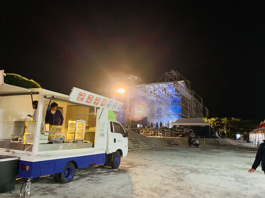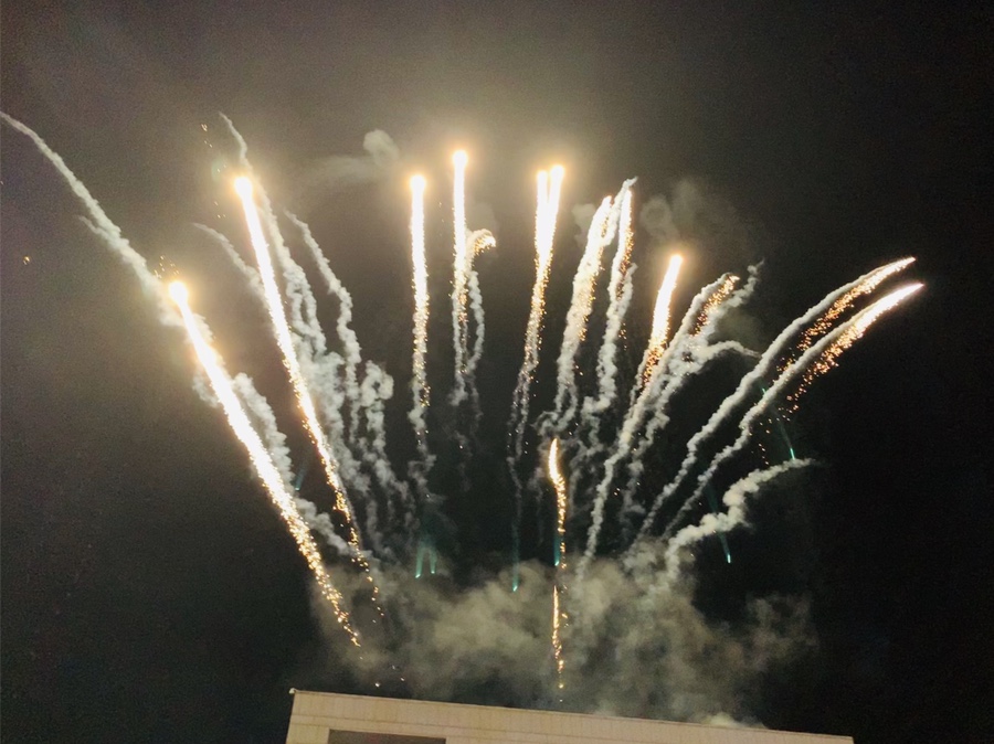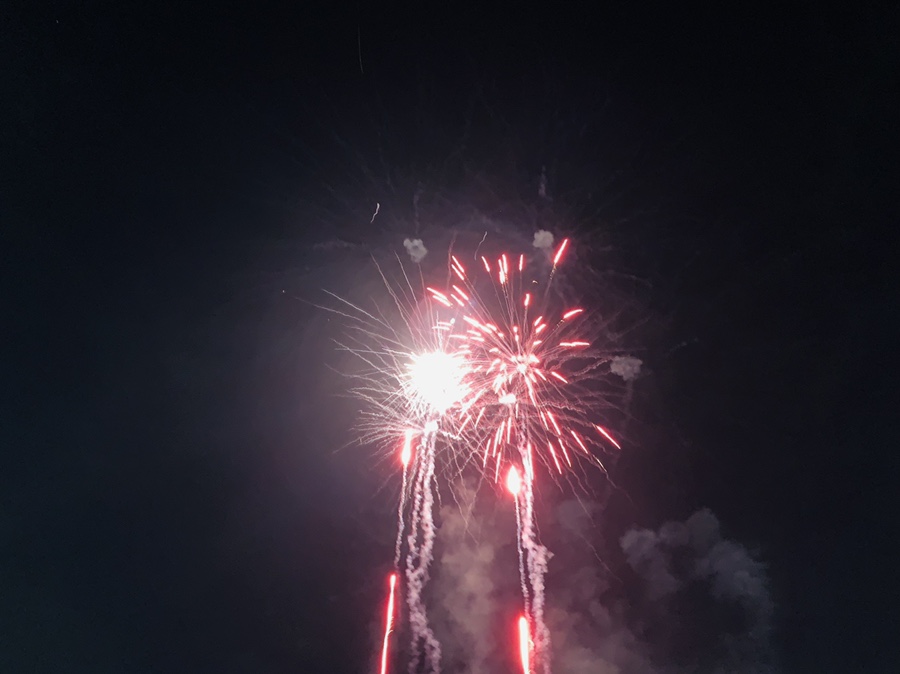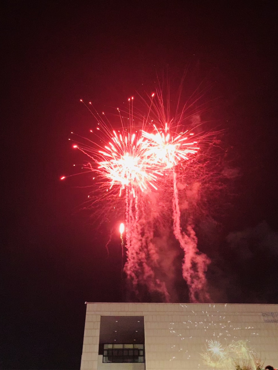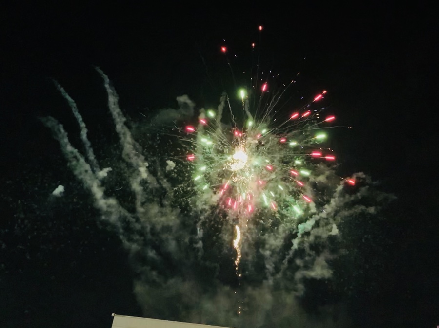 폭죽을 구경하기 위해 8시쯤 행사장에 도착했는데.... 음식부스와 판매부스는 이미 정리하기 시작하더군요. 자전거를 적당한 곳에 주차하고서 축제장에 도착하고 자리에 앉으니!!! 폭죽쇼가 펼쳐지더군요. 와!!! 폭죽은 건물 위에서 올라오고 약 10분 정도 펼쳐집니다. 아이에게 축제장에 도착하면 맛있는 축제음식을 사주겠다고 이야기하고 축제장에 도착하니... 대부분의 간이음식점들이 마감하고 있고, 아직 마감하지 않은 음식점들은.... 간식이 아닌 식사용.... 음식이 있어서 페스~