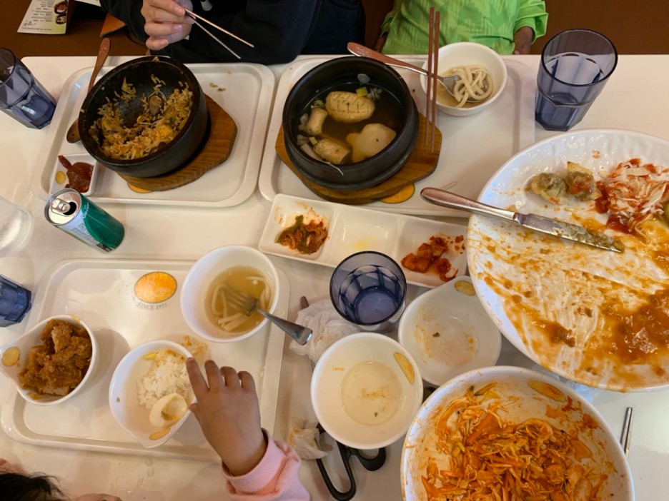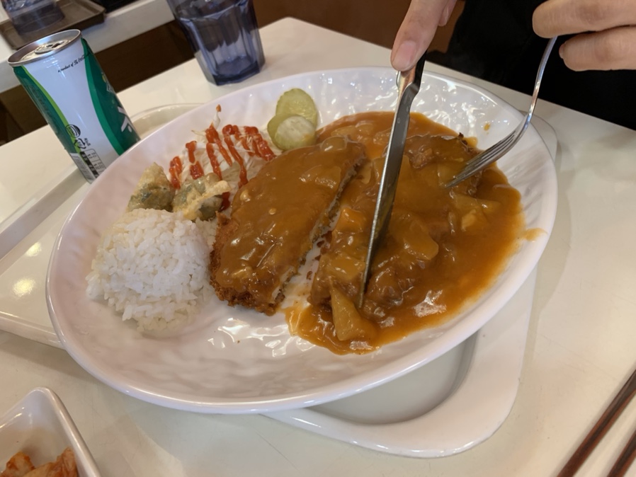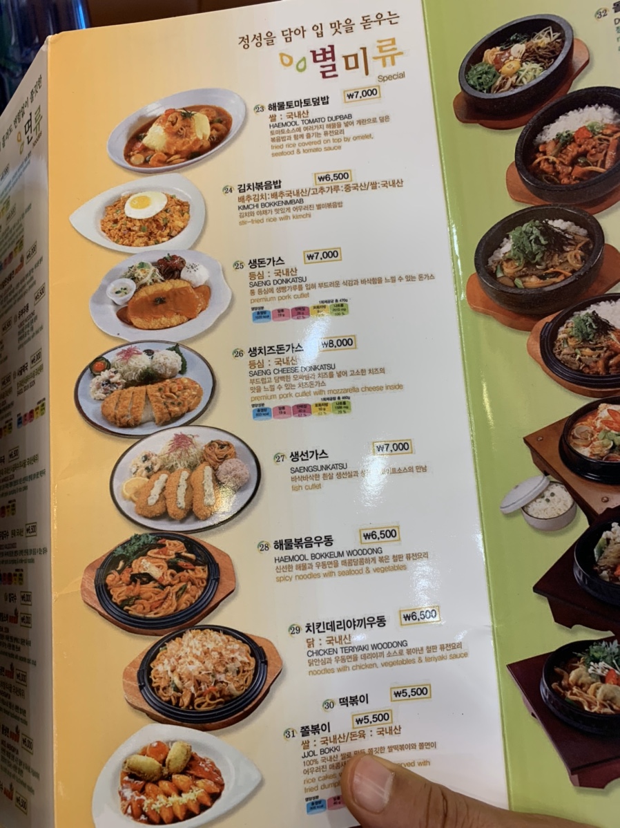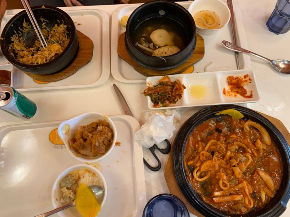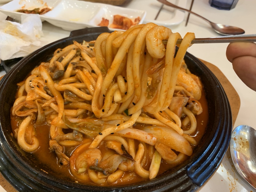 가장 기대를 했던 쫄면은......... 만두는 그럭저럭 먹을만하고.... 돈가스는.... 낚지 덮밥은 메뉴판의 이미지와 너무 달라서 다른 메뉴가 나왔는지 확인했지만, 낚지 덮밥이 맞는다고 하네요. 아이가 우동을 먹고 싶다고 해서 5,500원 우동과 6,500원 해물우동을 추가 주문을 했습니다. 낚지 덮밥은 특히 메뉴판에는 넓은 철판?에 나오는 것으로 표기되어 있지만 돌솥밥으로 나았네요. 더욱이 낚지는 안 보이고....