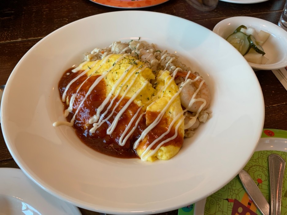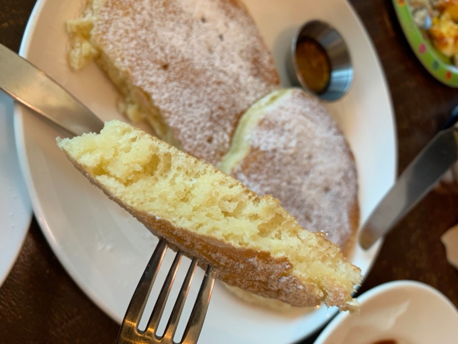 새우볶은밥 위에 올려진 달걀이 부드럽고 새우 식감이 좋았습니다. 다만 양이 너무 적어서..... 성인 혼자 먹기에는 양이 적어서 추가 주문이 필요해 보이는 새우볶은밥이네요. 함께 나온 오리지널 팬케이크는 살짝 밀가루 향기가 풍기며 식감이 부드러운 팬케익입니다. 가격 대비 좀 비싼 느낌이 들었습니다. 식당은 음식 맛보다는 분위기에 방문하는 곳이네요. 실내 분위기는 나름 괜찮은 곳이어서....