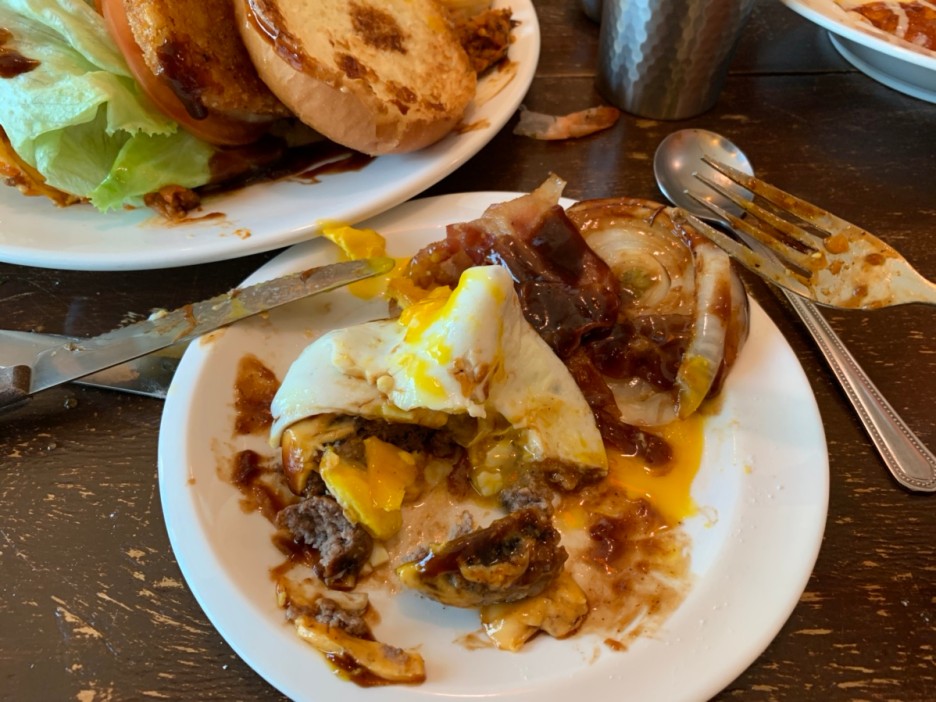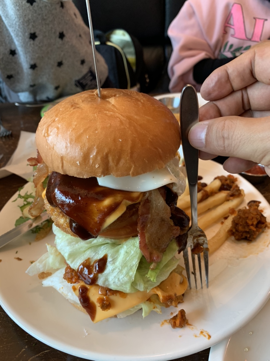 드디어 내가 좋아하는 블랙 햄버거가 나왔습니다. 18,900원 햄버거가 어떻게 나올지 많이 궁금했었는데.... 햄버거 비주얼은 사진 찍기 좋은 대형이고 맛있어 보이네요. 햄버거가 너무 커서 들고 먹기에는...... 도저히 먹을 수 없는 사이즈입니다. 햄버거 위에 고정용 꼬치를 빼서 나이프로 햄버거 상단의 패티와 빵을 잘라서 먹어보았네요. 상단 패티는 나름 먹을만했네요.