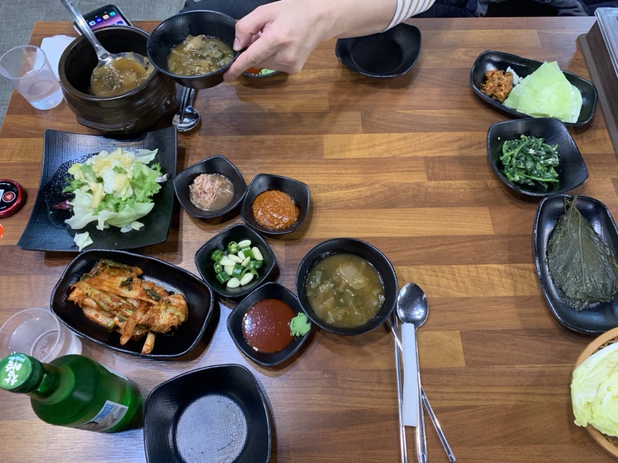 보쌈과 함께 나온 절인 배추는 물기를 많이 머금고 있어서 굴보쌈을 함께 먹으면 맹맹한 맛이 느껴지더군요. 절인 배추의 물은 빼주었으면 더 좋겠다는.... 굴보쌈과 함께 나온 배춧잎을 제외하고는 쌈 재료는 굴보쌈과 잘 어울리지는 않더군요. 고기가 좀 얇았으면.... 굴보쌈이 술안주다 보니 술과 함께 먹기에 국물이 필수?인데... 된장찌개도 좀 끓여놓은지(전기밥솥에서) 오래되어서 좀 짠맛이 강하게 나더군요. 바로 끓여서 나오면 개운하게 소주 한 잔 마시기 좋은 곳이 될 것 같더군요.