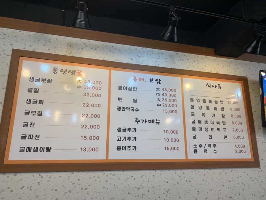 굴보쌈의 고기는 좀 얇게 썰어져 나왔으면 굴과 함께 싸먹기 좋겠고... 쌈 재료는 배춧잎과 깻잎이나 상추가 있으면 굴과 보쌈을 함께 싸먹기 좋겠더군요. 굴라면은.... 일반 라면에 생굴 넣어 끊인 거라 패스~