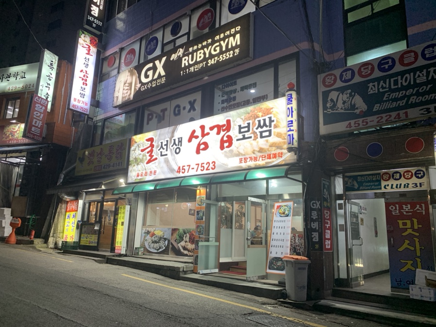 지인과 저녁을 먹기 위해 방문한 굴선생 삼겹 보쌈 식당입니다. 예전에 고깃집이(국민 고기?) 있던 자리인데, 굴보쌈 식당이 생겼네요.