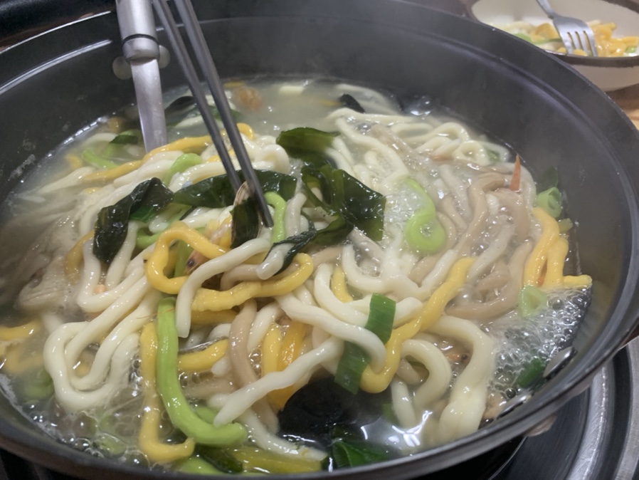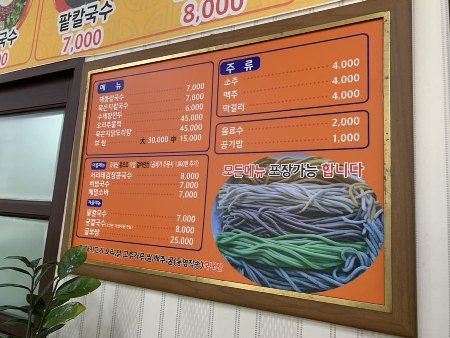 해물칼국수 1인 7,000원으로 2인분과 아이들용 돈가스와 왕만두를 주문해 보았습니다. 예전에도 모임으로 몇 번 방문해 보았던 기억이 있는데... 이제서야 방문 후기를 작성해 봅니다. 주문한 칼국수 면색상은 알록달록한 색상인데.... 면색상이 알록달록해서 식욕을 자극하지는 않고.... 좀 거부감이 드는 색상이네요. 면 색상만 그렇지 면을 쫄긱하고 국물은 먹을만하더군요. 특히 함께 나온 깍두기와 배추 김치가 맛있어서 좋았네요.