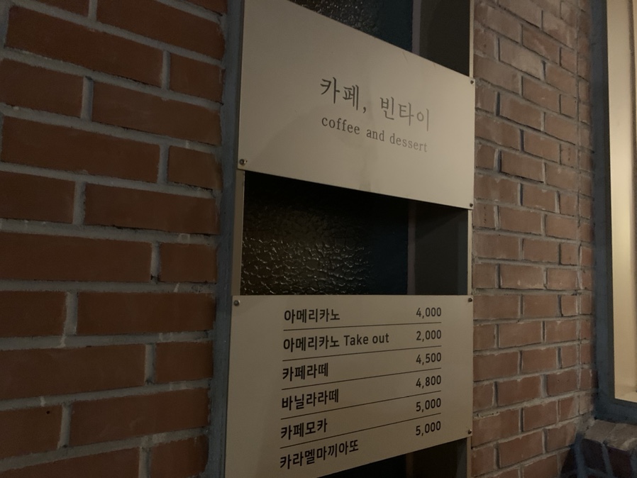처음 방문해본 빈타이 카페.... 카페의 음료보다는 내부 공간 구성이 잘 되어서 사람들이 많이 방문하는 카페인 거 같습니다. 주문한 돌체라떼도 나쁘지는 않았고요. 카페 입구에 "커피 n 디저트" 문구가 보이는데... 다음에는 디저트를 주문해 보아야겠네요.