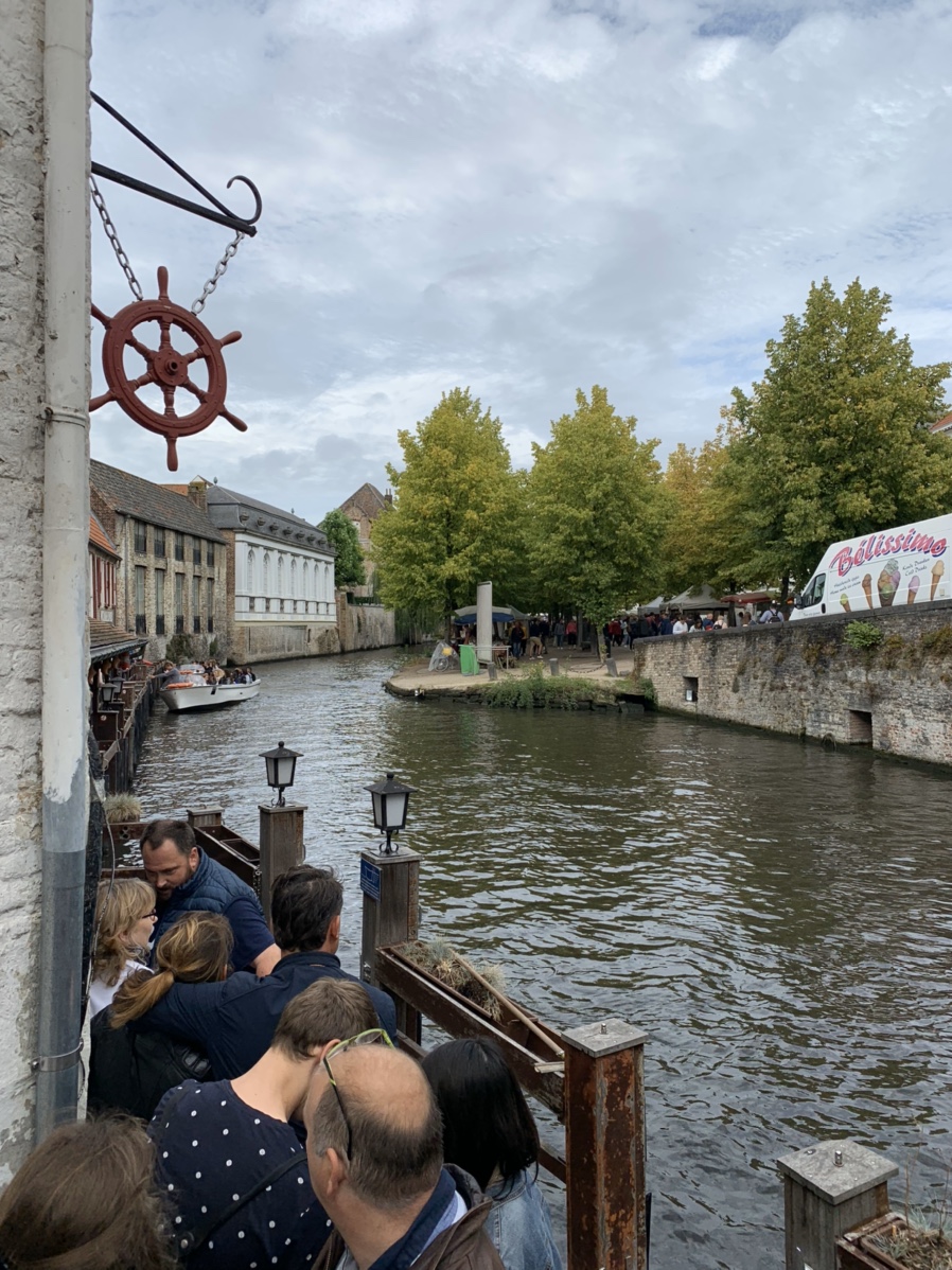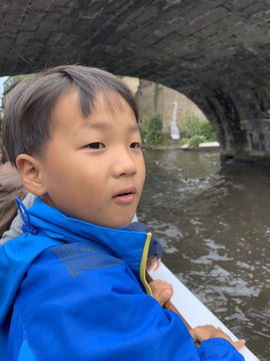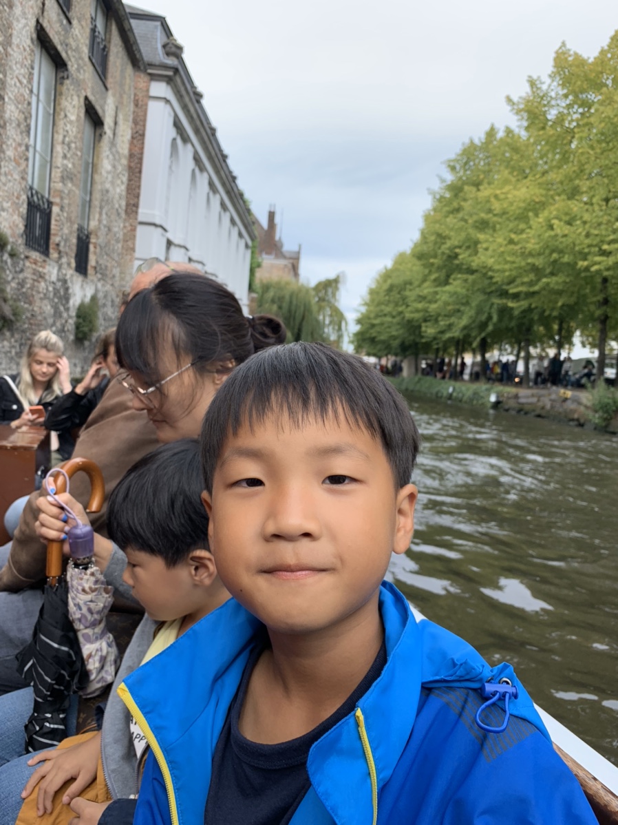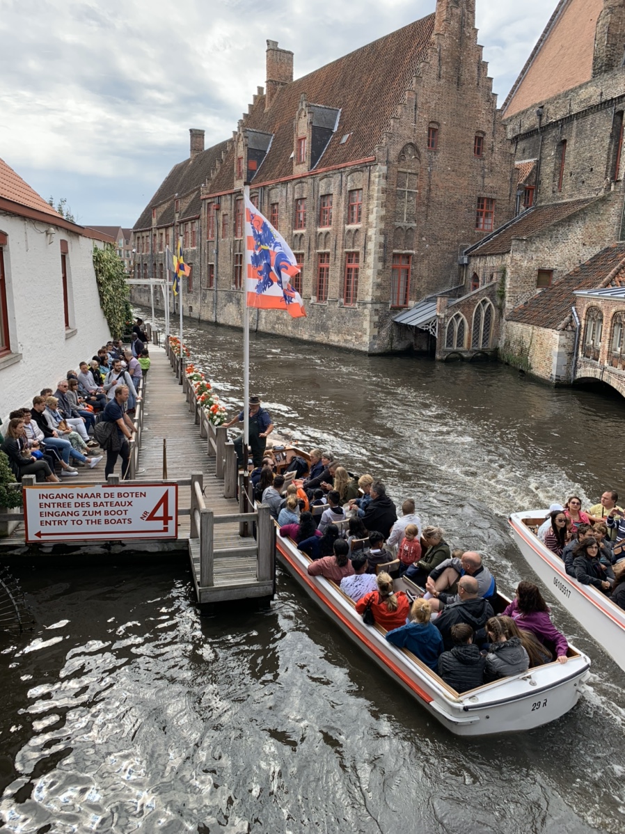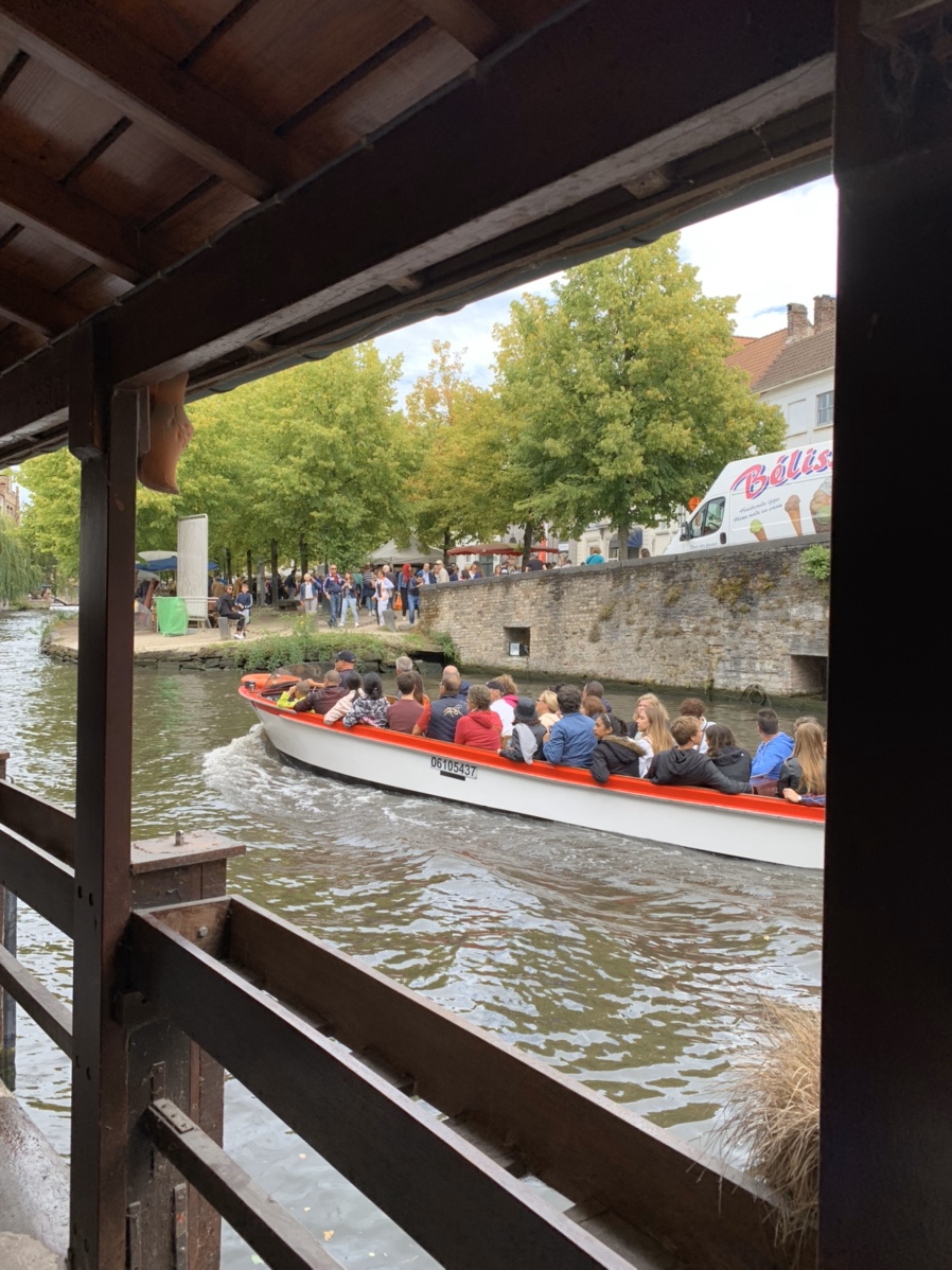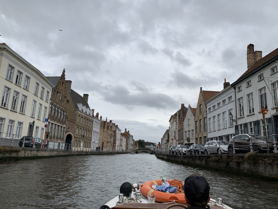 대기줄이 좀 있었지만 보트 회전율? 이 좋아서 대기줄이 금방 줄어들었습니다. 대략 20분? 정도 기다리고 드디어 아이와 함께 탑승했습니다. 탑승하고 선장님의 말재간으로 흥을 돋우시고 운행을 시작합니다. 브뤼헤의 시내를 자전거로 구경했을 때 보이는 전망과 유람선의 뷰가 많이 다르더군요. 당연한 이야기 같지만, 유람선으로 구경하는 건물들은 건물과 운하의 연계된 공간이 많이 보이더군요.