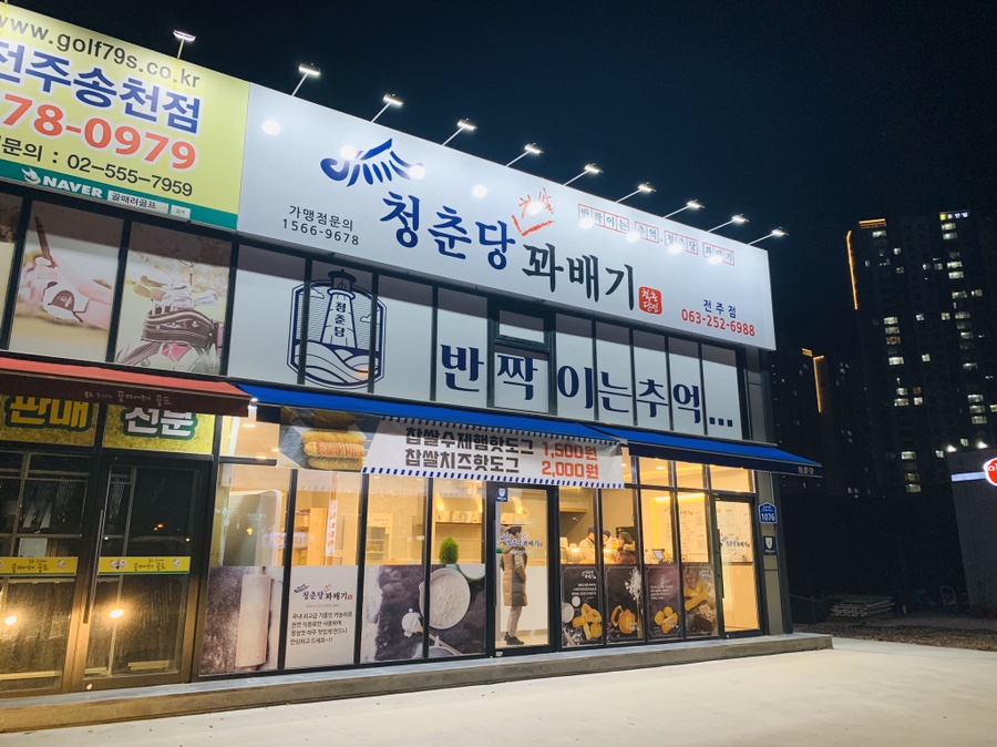 겨울 간식 메뉴 호떡과 꽈배기를 파는 곳이 있으면 그냥 지나칠 수가 없겠죠~ 지나가는 길 보였던 청춘당 꽈배기 들러보았습니다. 얼마 전 핫도그 프랜차이즈 많이 생겼다가 한 번에 사라졌었는데... 이제 꽈배기? 흐름인가 봅니다. 꽈배기도 프렌차이로 생기네요.