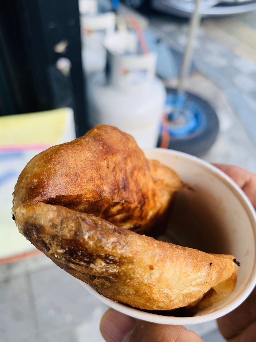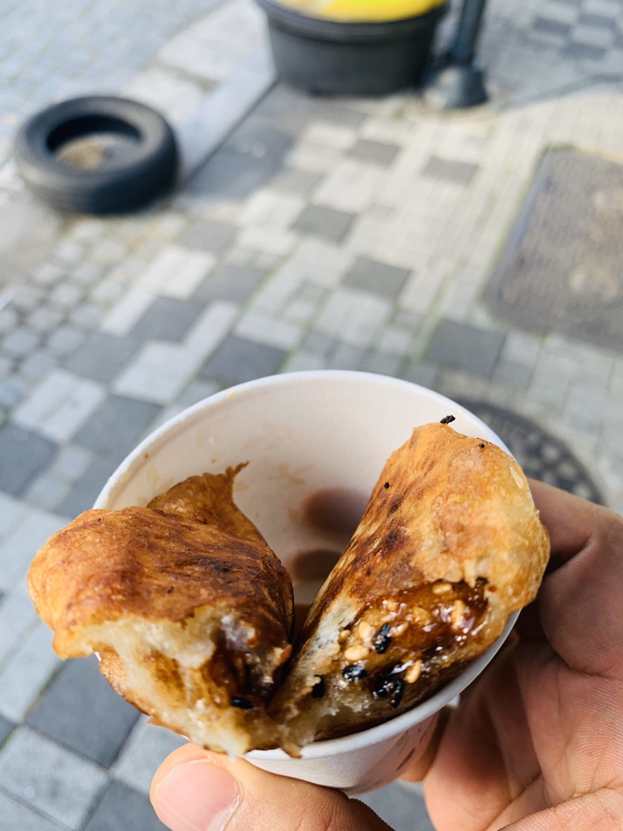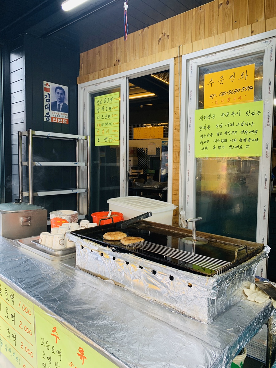 호떡 굽는 사장님이 자꾸 자리를 비우는 사이.... 호떡이 살짝 바삭하게(조금 누룽지처럼 누렀다고 해야 하나... 좀 태우셨네요) 구워졌네요. 그래서 바로 나온 호떡이라 따뜻하게 먹었네요. 호떡은 중앙시장 호떡이...ㅠㅠ