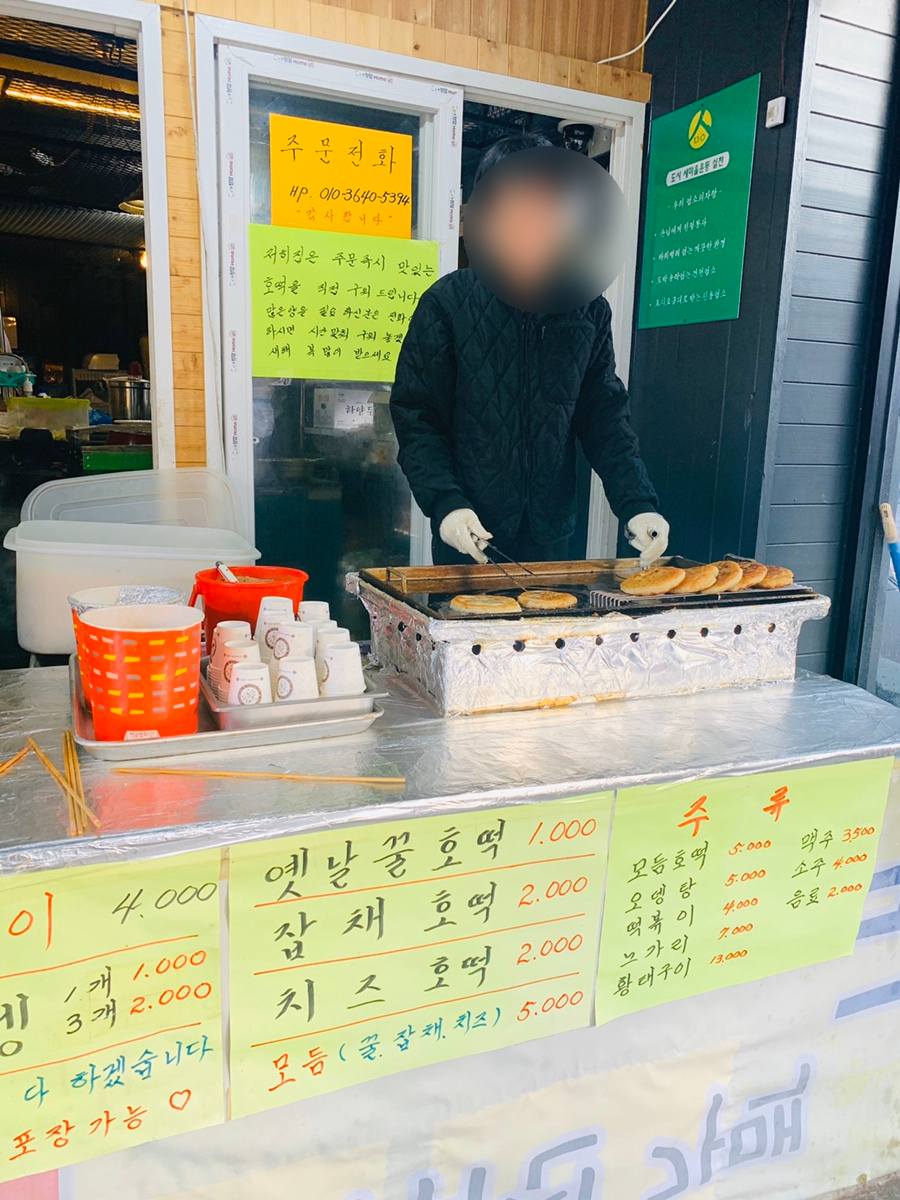 호떡집이 보이면 길을 멈추어 잠시 들립니다. 내가 좋아하는 호떡을 먹기 위해서~ 호떡집에 사람들이 꽤? 모여있어서 여기는 무슨 호떡이 있을까? 생각하던 찰나!! 메뉴판이 보이더군요. 옛날 호떡 1,000원, 잡채/치즈 호떡 2,000원이 보이더군요. 잡채 호떡은 남대문 시장에 하나의 1,000원이 생각나더군요. 호떡 크기도 끄고 맛도 나름 나쁘지 않았던~^^ 잡채 호떡을 먹고 싶었지만, 첫 방문하는 호떡집이라 기본인 옛날 호떡 하나 주문했습니다.