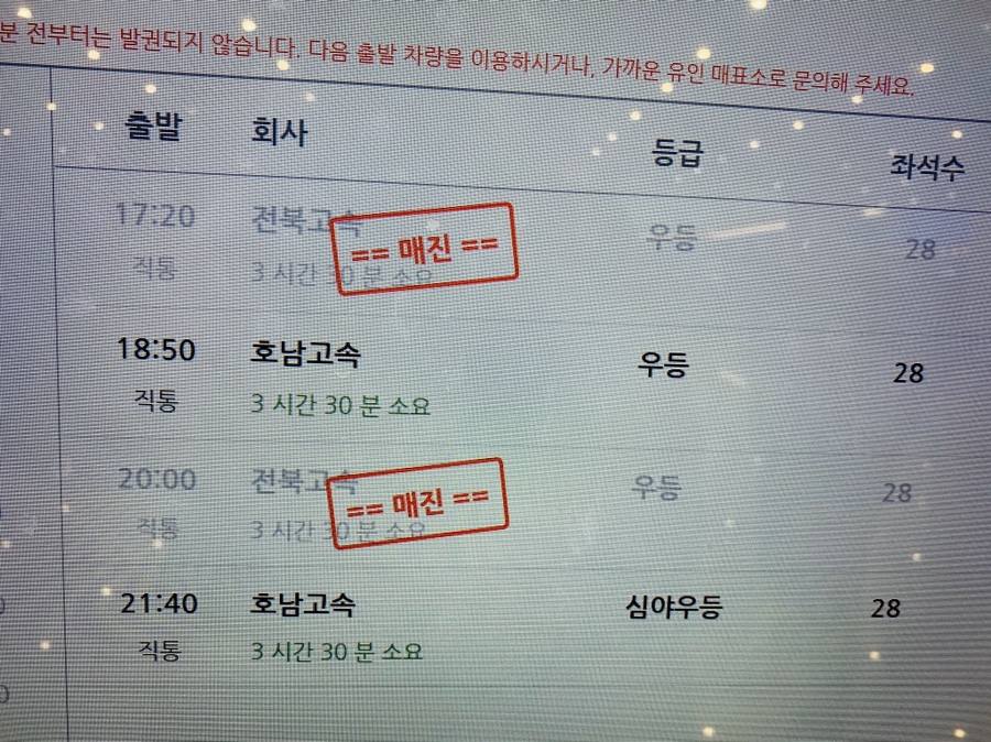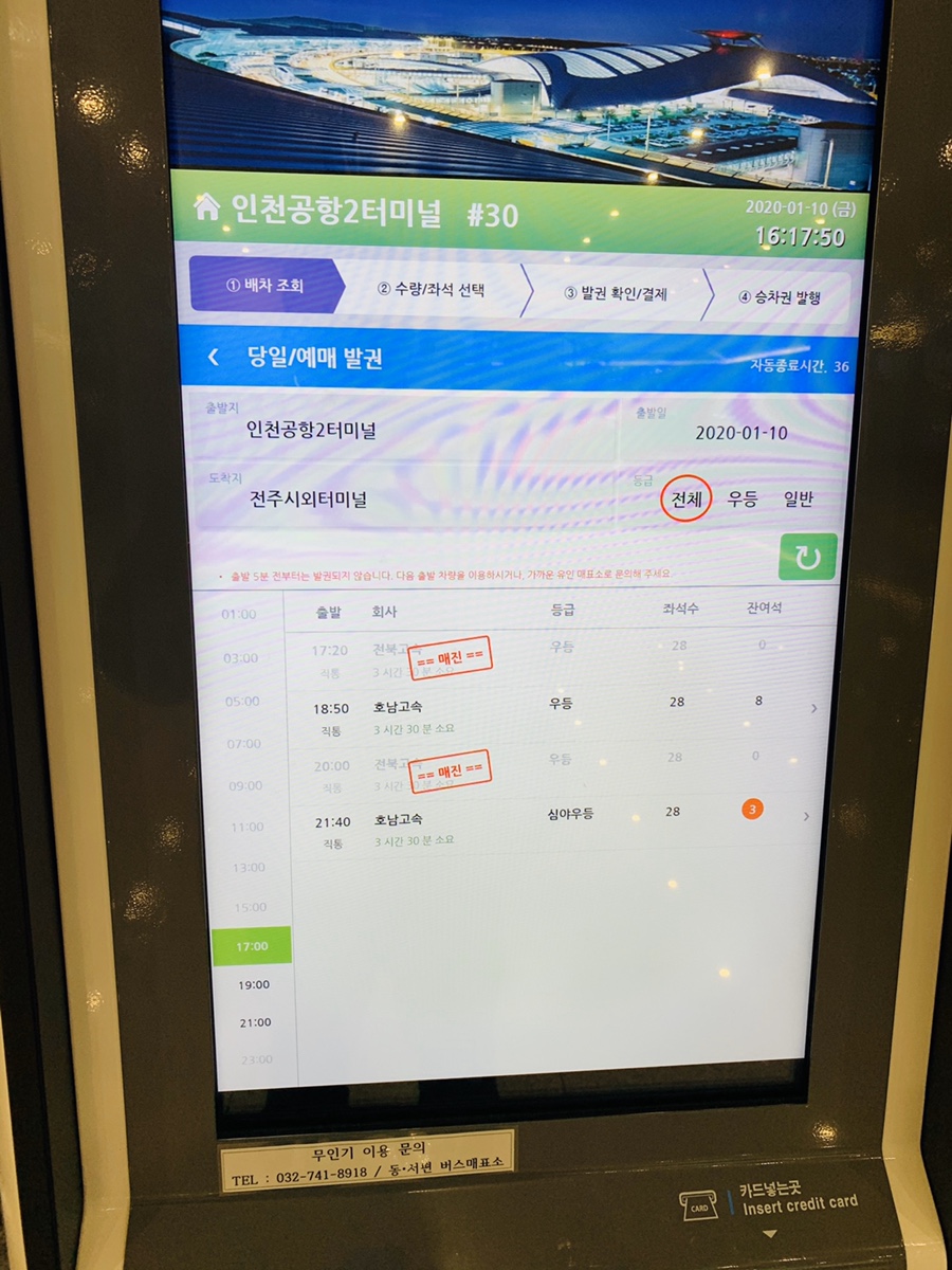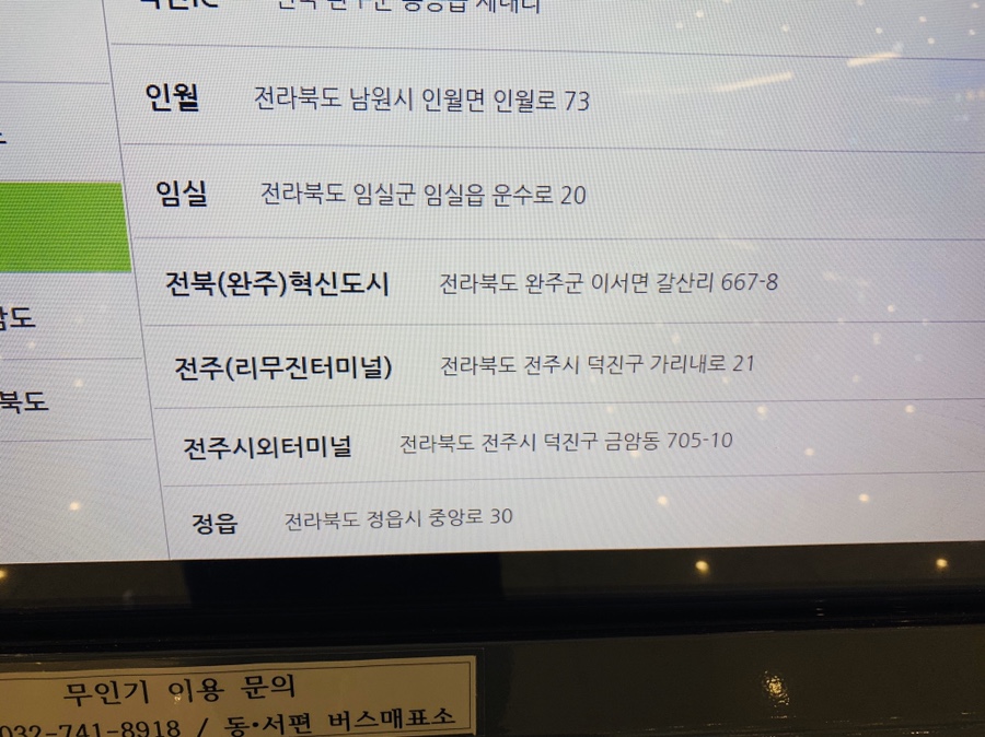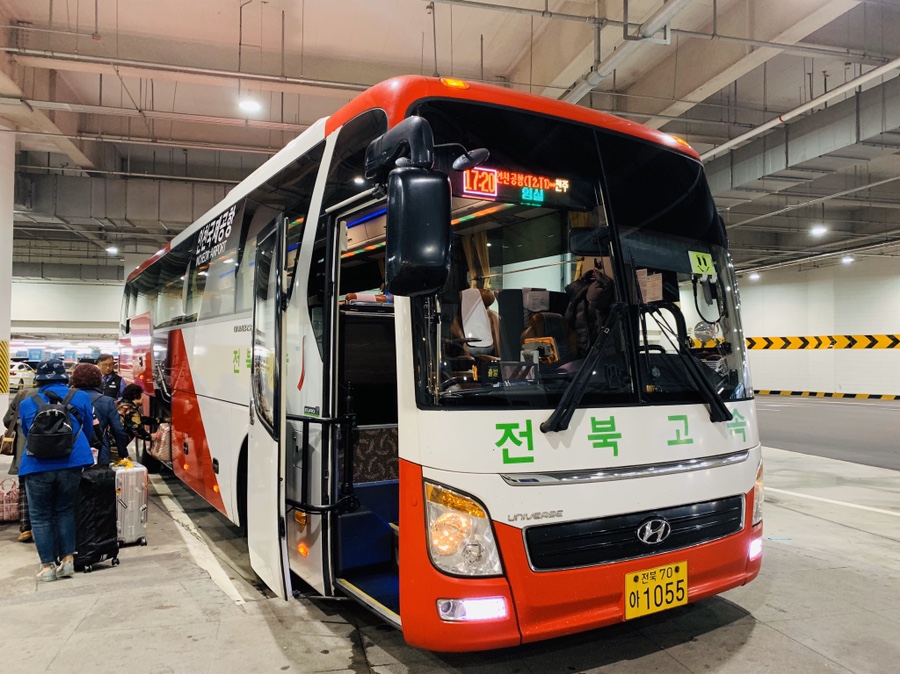그래서 대안으로 나오는 교통 편이 KTX입니다. KTX의 경우는 인천공항에서 리무진 버스로 광명역까지 가서 KTX로 환승하는 방법이 있습니다. 시간적인 면에서는 가정 최적의 방법이지만, 환승을 위해서 가지고 있는 짐을 이동하는 불편한 점과 KTX를 사전에 예매하지 않을 경우에 모두 매진으로 이용하기 어려움이 있습니다. 요금이 비싸다는 것도 있지만.... KTX가 모두 매진이니.... 그래서 다른 대안으로 나온 것이 전북고속에서 운영하는 직행버스가 있습니다. 김포공항과 익산 IC를 경유하지 않고 전주로 직행하기에 시간도 리무진에 비해서 약 40분이 단축된 3시간 30분 소요이며 요금도 리무진에 비해서 5000원 정도 저렴합니다. 단점으로는 차량 운행이 많지 않다는 점이 있습니다.