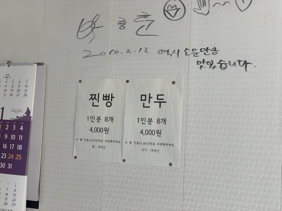 식객 허명만의 백반 기행을 보고 방문한 백일홍입니다. 찐빵이 일반 찐빵에 비해서 3분의 1 정도의 크기이며 빵 부분이 얇아서 찐빵을 음료수 없이 먹을 수 있어서 좋았습니다. 다만, 팥 소가 너무 달아서.... 한 번에 여러 개 먹기는 힘든 찐빵이더군요. 다음에는 만두를 한 번 먹으로 방문해야겠네요.