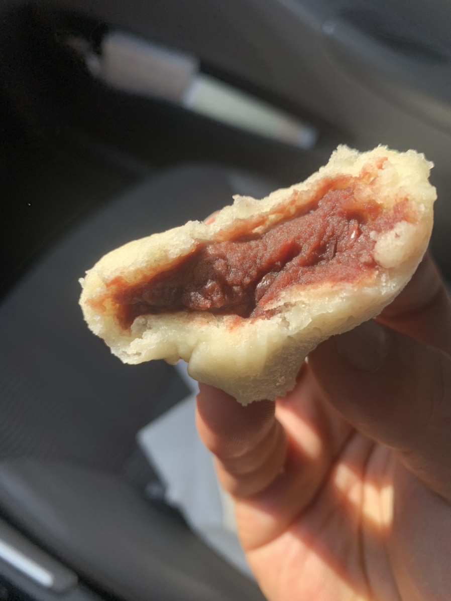 찐빵을 받아 들고서 바로 먹어야겠죠? 그래서 차에 들어가 찐빵을 열어보았는데, 크기가 상당히 작더군요. 일반 찐빵에 비해 약 3분의 1 정도의 사이즈로 한입에 들어갈 정도입니다. 그렇다고, 뜨거운 찐빵을 한입에 넣었다가 큰일 나겠죠?ㅎㅎ 그래서 한입을 베어 먹어 보았습니다. 사이즈가 작다 보니 빵 부분에 비해서 팥 소가 많이 들어가 있었네요. 더욱이 팥 소가 평소 먹던 팥에 비해서 달달함이 강했습니다. 달달한 음식을 좋아하는 나로서도 너무 달아서 한 번에 4개 먹기는 좀 버겁더군요.