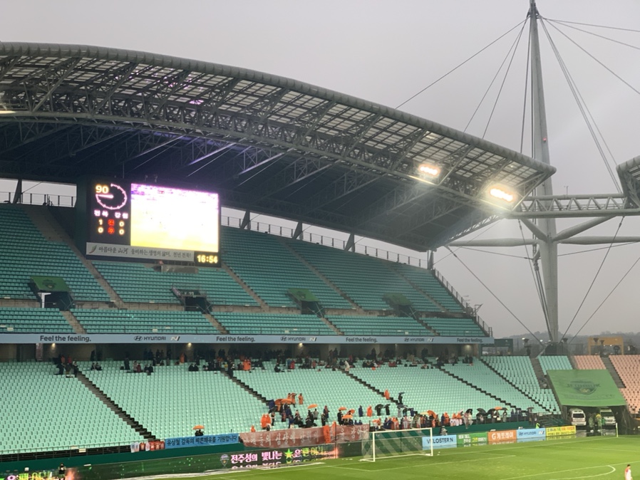 K리그 순위 결정 방식이 1. 승점(울산 현대 3점 유리) 2. 다득점(전북 현대 1점 유리), 3. 득실차(전북 현대 8 득점 유리), 4. 다승(울산 현대 2승 유리), 5. 승자승(1승 1 폐 2 무로 동률), 6. 벌점(울산 현대 유리), 7. 추첨 방식(로또?)입니다. 승점과 다득점에서 유리한 입장이 아니다 보니 큰 기대를 안 하고 경기를 관람했습니다.