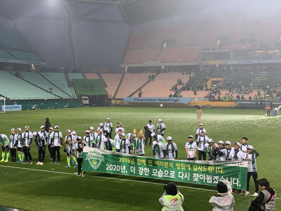 우승이 어려울 거라는 생각을 했었는데.... 우승!!! 포항이 도와서, 울산이 못해서, 전북이 잘해서 우승하게 되어서 기분이 좋았던 하루였습니다. 2020년에는 AFC 챔피언스리스 우승을 향해 나아가길 바라봅니다. `19년도 AFC 챔피언스리스 4강에 올라가면 해외 원정 경기를 가보려고 준비했었는데.... 2020년도는 가능하겠죠?
