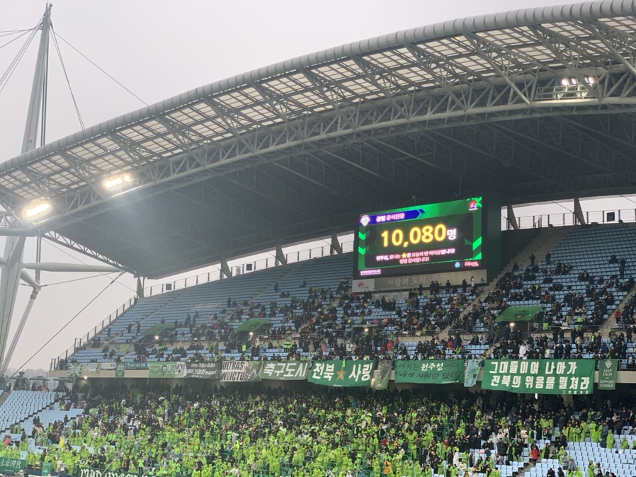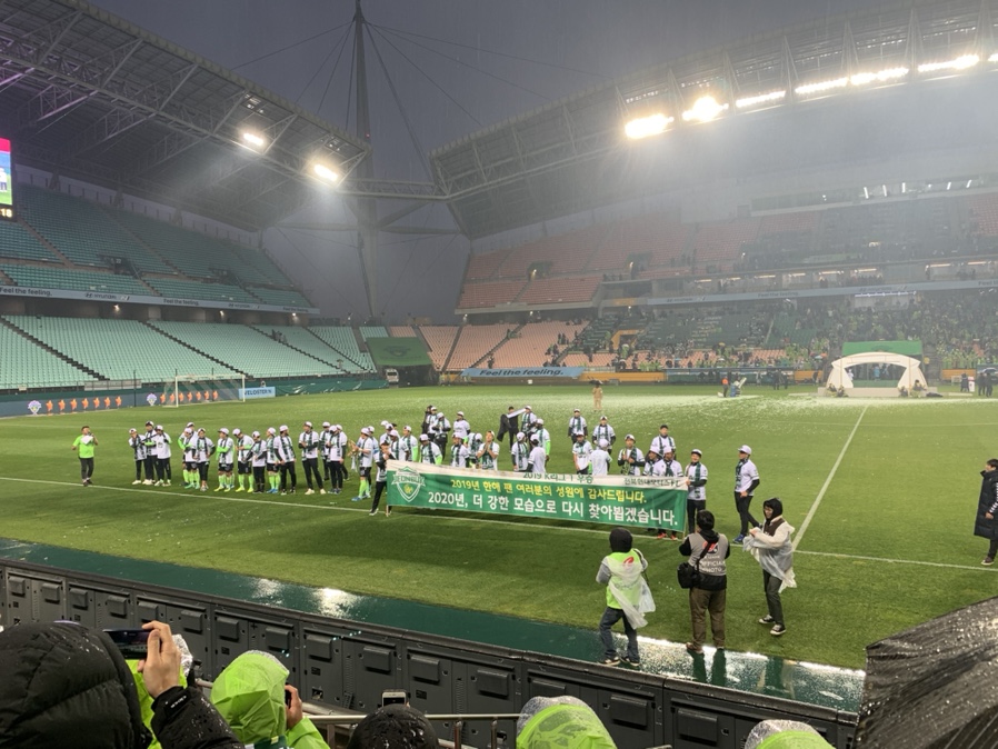 2019년 전북 현대 FC가 우승한지도 벌써 2달 가까지 지났지만 그 우승의 기쁨이 아직도 남아있을 정도로 생생하게 기억이 납니다. 전북 현대 홈경기 안내 문자에서도 "K리그 역전 우승을 위해 전주성에서 팬 여러분들의 힘을 함께 모아주세요!"라는 문자를 보냈을 정도로 우승은 물건 나 갔다는 생각이 들었고.... 올해 마지막 경기나 보며 사은품으로 전북 현대 스티커나 받아오자는 생각으로 집을 나섰습니다.