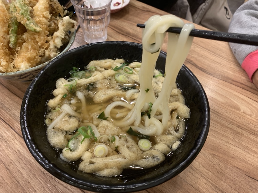 음식을 주문하고 약 20분이 지나서야 우동과 텐동이 나오더군요. 튀김이 들어간 텐동은 오래 걸리겠다는 생각이 들어도 우동이 오래 걸리는 건 이해가 가지 않더군요. 일단 우동은 국물은 가쓰오부시 향이 약간 나며 간이 약한 국물 맛으로 국물은 특이하지는 않고 면발은 쫄깃하니 좋았습니다. 다만 양이 너무 적다는 게 한 끼 식사로 6,000원 우동으로는 많이 부족한 느낌이었습니다.
