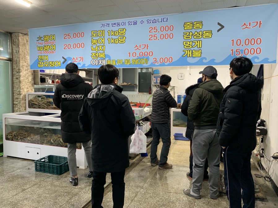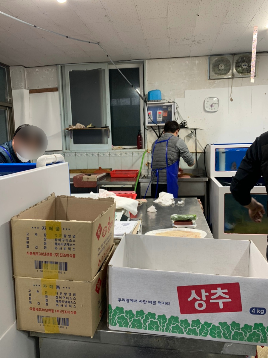 내가 방문한 날에도 해적 수산에는 많은 사람들이 있더군요. 송천동 농수산 시장도 아니고, 번화가도 아닌 이런 곳에 생뚱맞게 회 포장 전문점이 있는지 잘 이해는 가지 않지만, 사람들이 많이 다니는 곳이니 일단 들어가 봅니다. 대부분 손님들은 광어를 주문을 하시더군요. 그래서 대 광어 25,000원과 매운탕 3,000원을 하나씩 주문했습니다. 미리 온 손님들 포장을 해주시고 약 10분 정도 기다리니 주문했던 회와 매운탕 포장이 나왔네요.