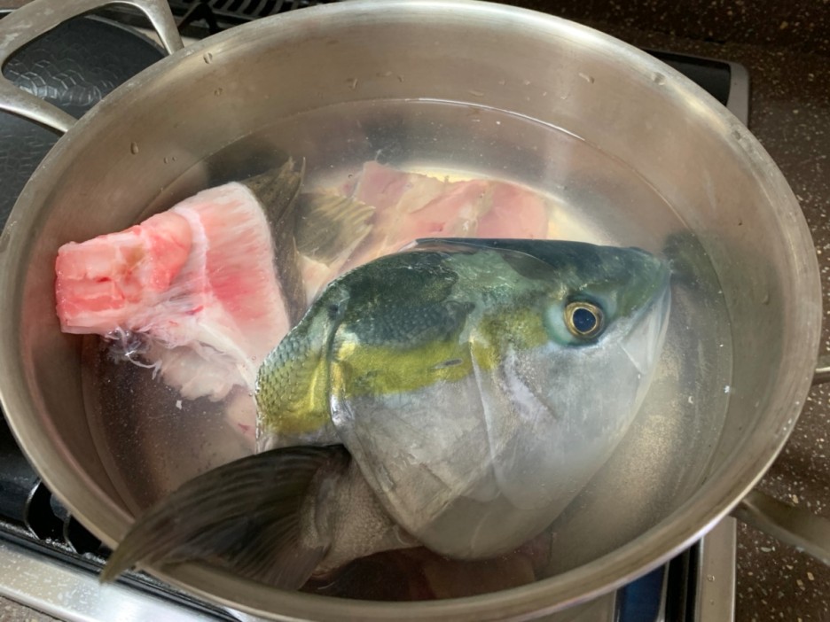 포장은 회를 집에서 풀어헤치고 초장에 고추냉이를 넣어 한 점 먹어보니 일반적인 광어회입니다. 회를 그렇게 좋아하지 않아서 25,000원이면 3명이 먹기에 적당한 거 같더군요. 회를 좋아하는 사람들은 2명이 먹어도 부족한 양이지만, 우리 집 식구들은 회를 그렇게 좋아하지 않아서 3명이 먹어도 몇 점 남더군요. 남은 회는 매운탕에 넣어 샤브롤 만들어 먹는 게 저는 더 맛나더군요. 회를 몇 점 먹고서 큰 냄비에 매운탕 생선과 매운탕용 다진 양념을 모두 넣어 푹 쌀 마 주었습니다.