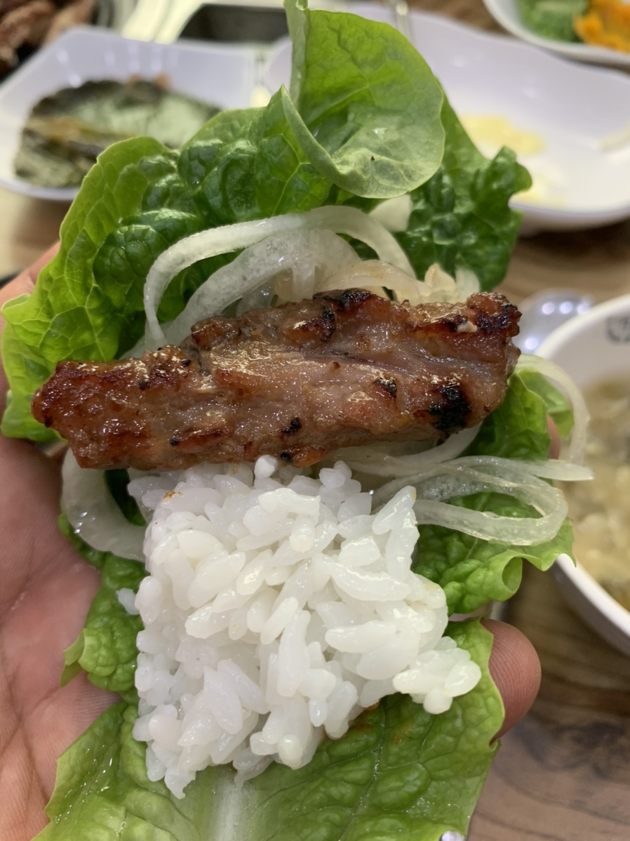 고기와 함께 먹을 수 있는 국물이 나왔으면 좋겠더군요. 국물이 없이 고기만 먹으니 느끼함과 퍽퍽함이 느껴졌습니다. 손님 서빙하시는 분들이 조금만 친절하면 좋겠다는 생각이 들더군요. 갈비 맛은 기본은 하는 식당이라 한 번 정도 방문하여 맛 정도 볼 식당이네요.