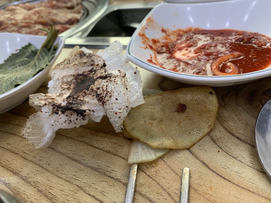 고기를 맛있게 먹고 추가 고기를 주문하고 불판이 더러운 거 같아서 불판을 갈아달라고 요청하니 그냥 고기를 구우시더군요. 그래서 고기를 한쪽으로 옮겨 놓고 불판을 휴지로 닦고 나니 이전에 구웠던 양념이 새가 막게 묻어 나오더군요. 음식은 기본적으로 맛은 있는 식당인데, 손님 대하는 부분에서는 그렇게 기분이 좋지는 않더군요.