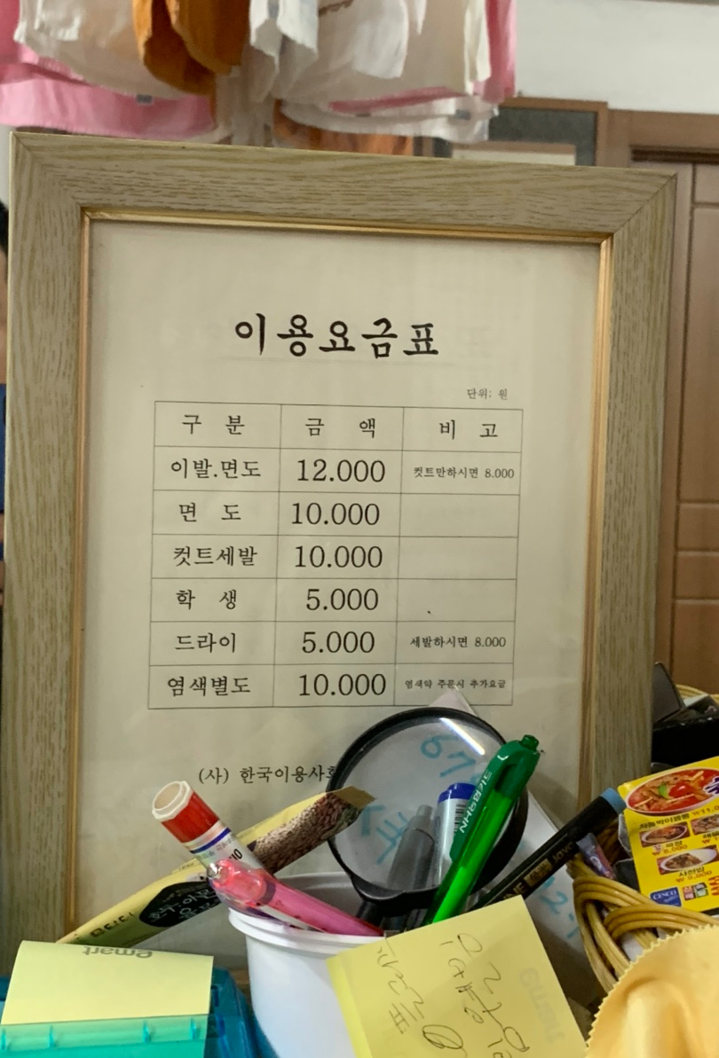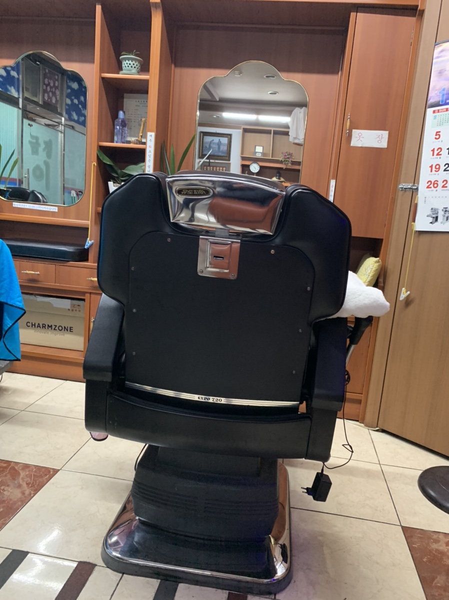 이발관 한편에는 이용요금이 붙어 있는데 커트 후 머리를 감으면 10,000원의 요금으로 그렇게 비싼 느낌은 안 들더군요. 이발관의 입구에는 이발용 의자 3개가 놓여있는데 이 유토피아 의자로 주로 뒤로 눕히는 기능이 있습니다. 예전 이발관에서는 머리와 함께 면도를 자주 했던 기억이 나는데 그 면도용으로는 적당한 기능이네요. 다만, 높이 조절이 없다 보니 이발관 아저씨께서 높이 조절이 필요하시면 그때그때 말씀을 해주시면 수동으로 내 허리를 이용해 높이 조절을 해주어야 합니다. ㅎㅎ 참 재미있는 경험이죠, 어린아이는 이 의자에 나무를 걸쳐 앉아서 머리를 깎았던 기억이 납니다.