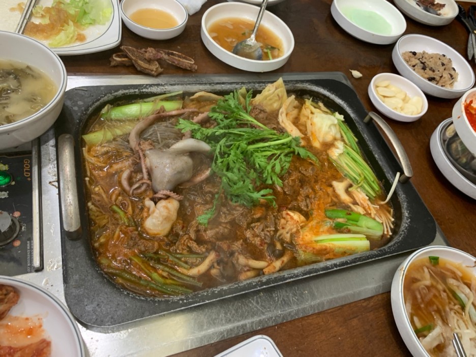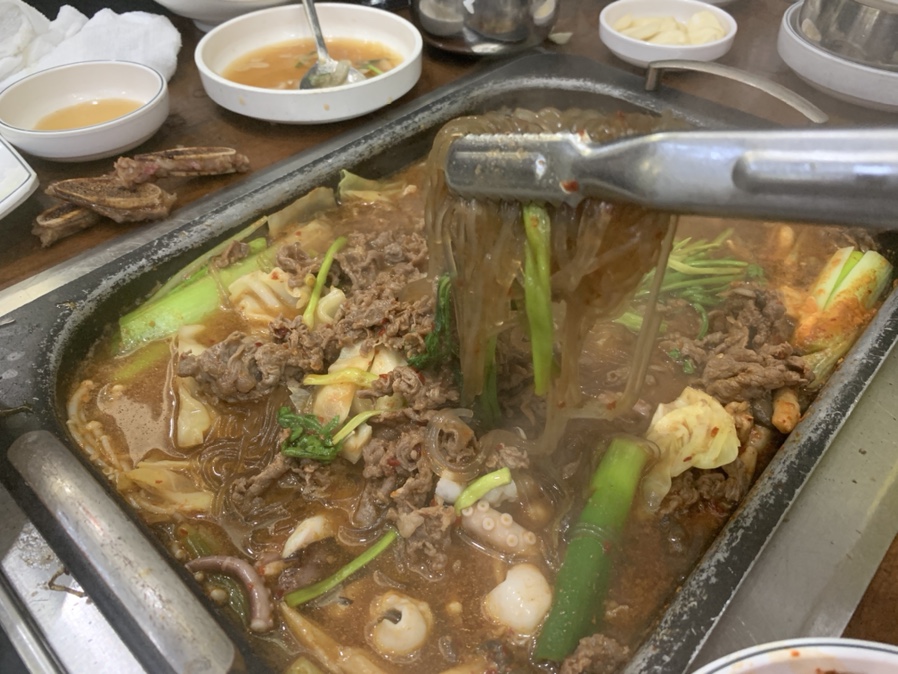 가볍게 LA갈비를 먹고서 후식으로 불낙 전골 주문해 보았습니다. 고기 먹고 후식은 냉면을 많이 주문하는데, 일반적인 냉면은 어느 식당에서나 먹을 수 있는 음식이라 불낙 전골은 주문해 보았습니다. 여기는 고기도 나름 괜찮지만, 특히 불낙 전골이 맛있어서 방문하게 되는 식당입니다. 불낙 전골의 간은 그렇게 강하지 않으며 전골에 들어있는 당면과 낙지를 잘게 썰고 밥과 비벼서 아이들에게 주면 잘 먹더군요. 나는 고기와 당면을 맛있게 먹었네요.