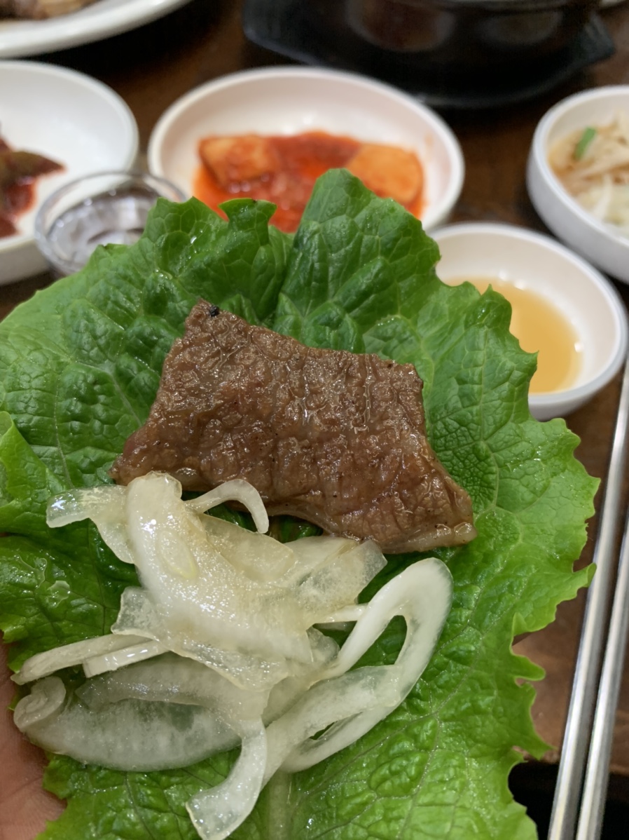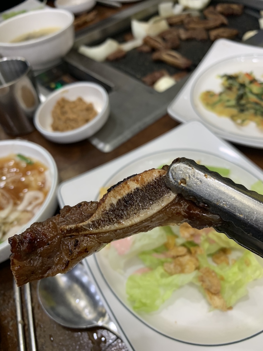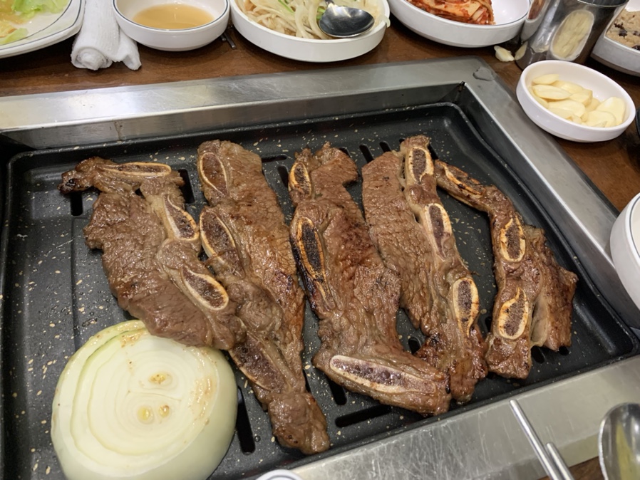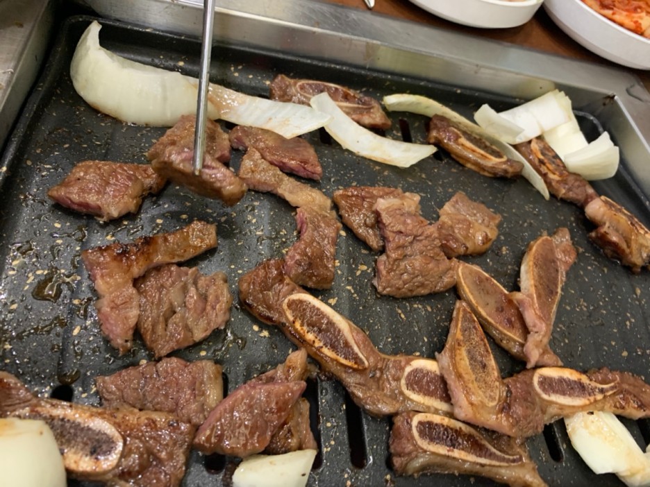 LA갈비는 250g 1인분에 13,000원, 불낙 전골은 1인분에 14,000원으로 가볍게 고기부터 시작하려고 LA갈비를 주문했습니다. 나는 LA갈비보다 돼지갈비를 더 좋아하는데 최근 아이가 LA갈비를 좋아하게 되어 LA갈비를 주문하게 되네요. LA갈비를 맛있게 구워 먹기 좋은 고기 부분은 자른 후 아이들에게 주고, 나는 뼈에 붙어있는 쫄쫄한 부분을 뜯어먹었네요. 살코기만 있는 부분도 좋지만, 갈비는 역시 뼈에 붙어있는 부분이 맛있죠.