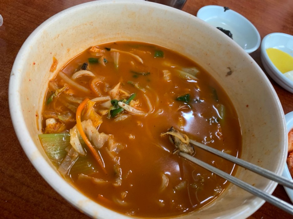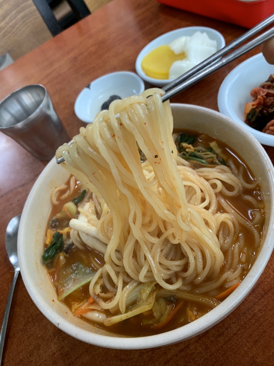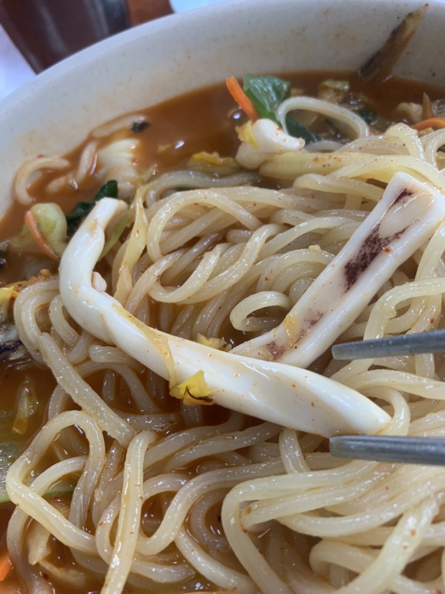 짬뽕 국물은 첫맛은 그렇게 얼큰한 맛이 느껴지지 않지만 먹다 보니 매콤함이 뒤늦게 올라오더군요. 아무래도 진한 닭 육수에 매운맛이 가려졌나 보더군요. 짬뽕의 양은 넉넉한 편으로 한 끼 식사로 충분한 양이더군요. 짬뽕 국물에 밥까지 말아서 먹으려 했으나 배가 너무 불러서 밥까지는 주문하지 않았네요. 일반 프랜차이즈에서 먹는 개운한 국물에 불 맛이 느껴지는 짬뽕과는 다른 느낌의 진한 육수의 담백함이 느껴지는 짬뽕입니다.
