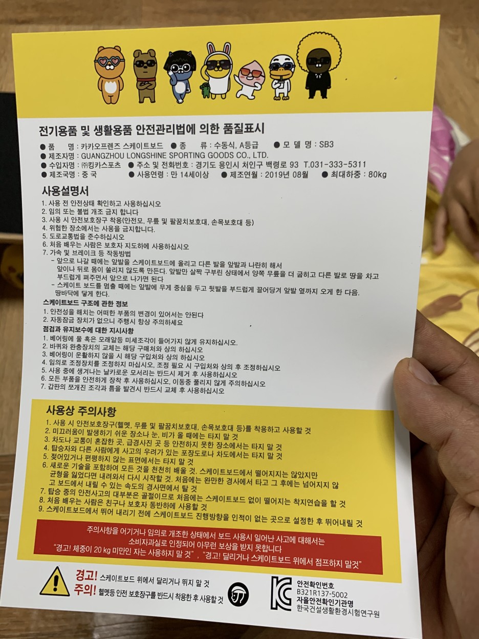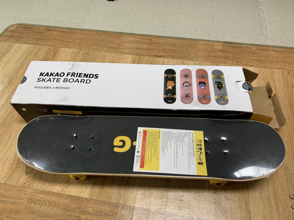 아이가 좋아하는 카카오톡 캐릭터로 구입한 스케이트보드!! 생각보다 스케이트보드 타는 것을 좋아하네요. 주말마다 아이와 하나씩 연습하며 보드 스킬을 익혀가야겠네요.