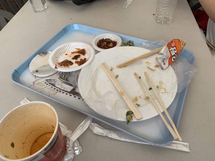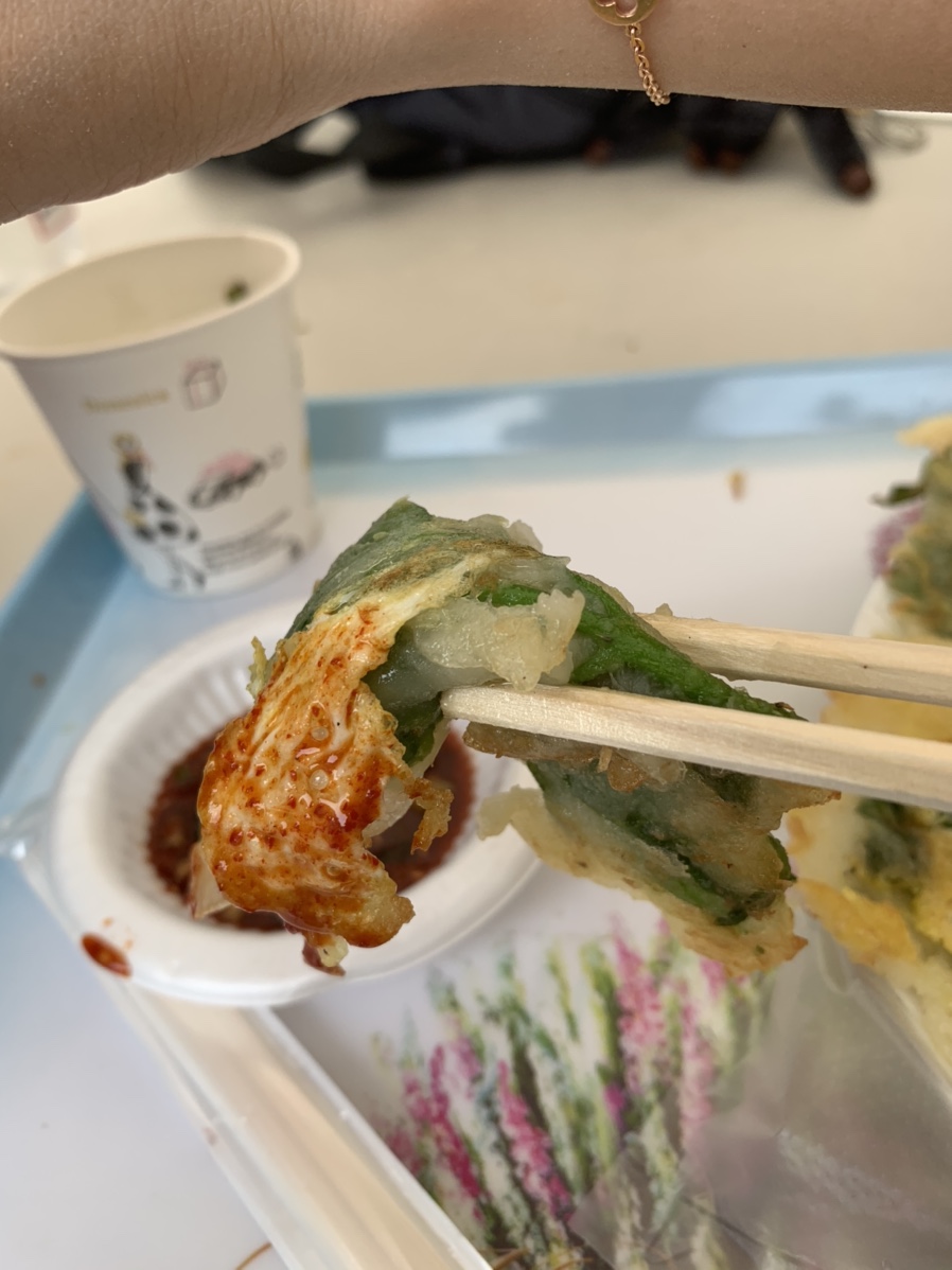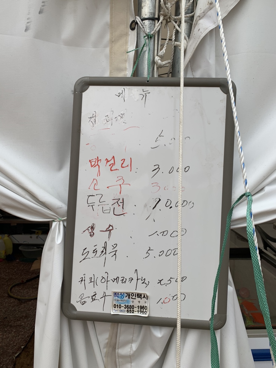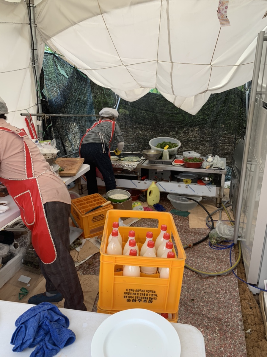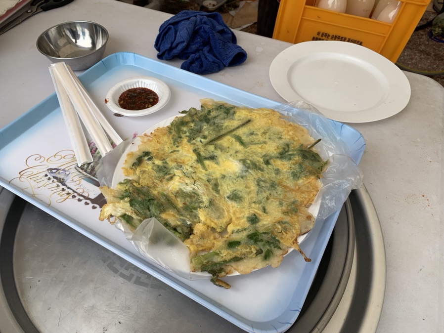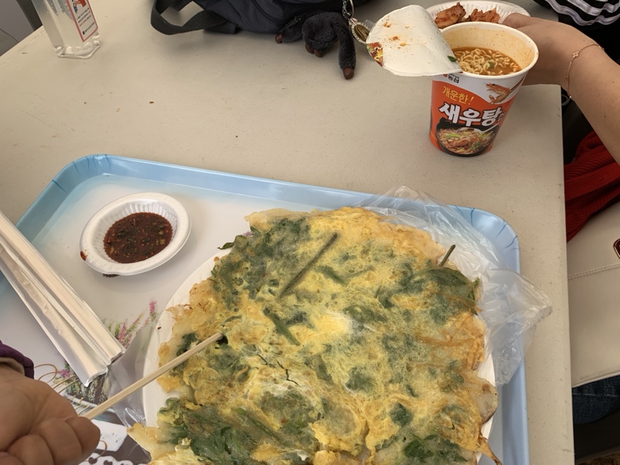 순창 적성면에서는 두릅전을 판매하고 있더군요. 두릅을 뜨거운 물에 살짝 데친 후 초장에 먹는 숙회로는 먹어보았지만, 두릅을 이용해서 전은 생소하기도 하도 다른 사람들이 맛있게 먹는 모습을 보고 바로 주문했습니다. 늦은 점심이기도 해서 컵라면도 2개 추가! 순창에서만 맛볼 수 있는 강천산 쌀 막걸리도 주문하고 싶었지만 운전해야 해서 패스!