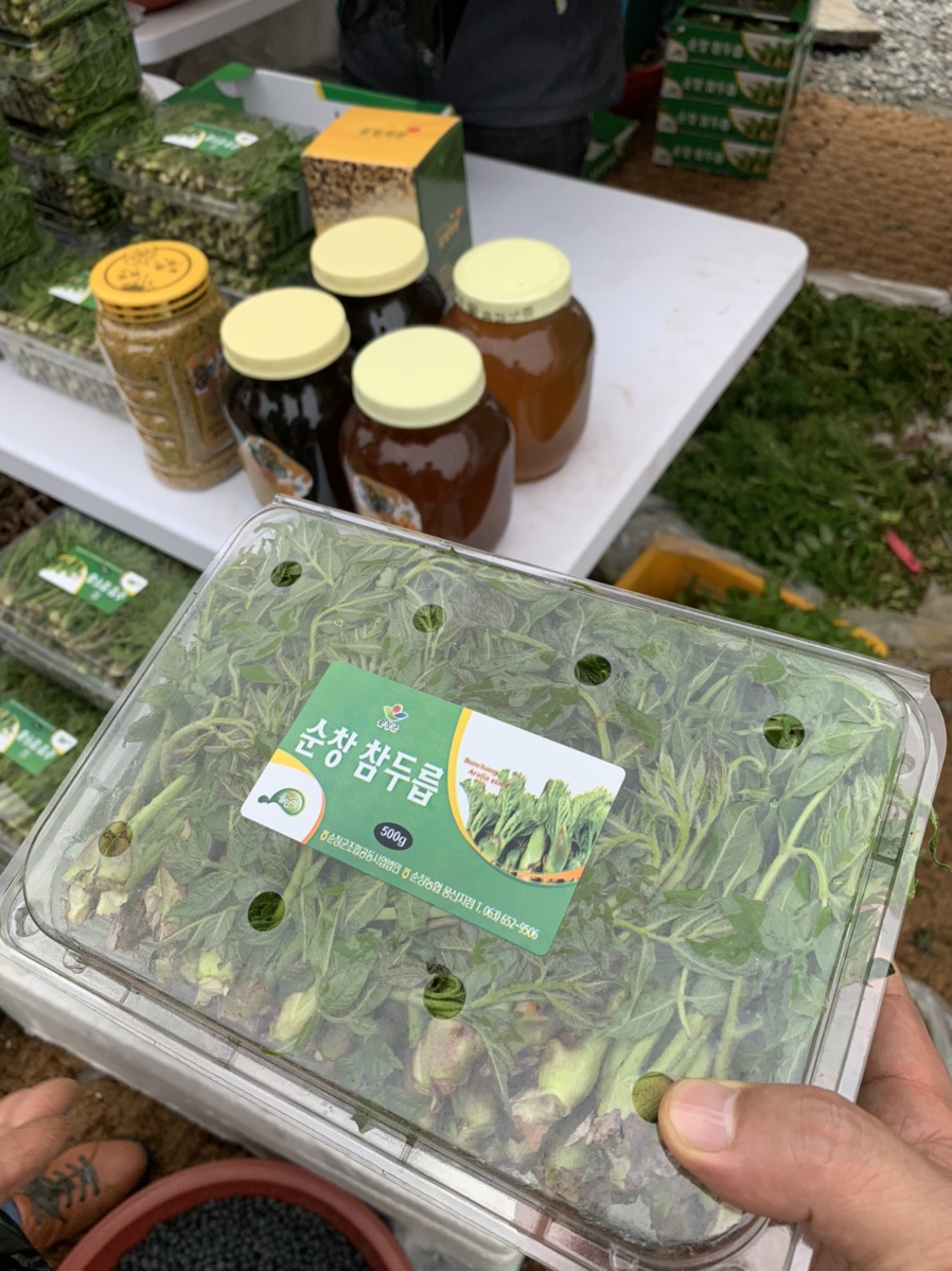 순창 체계산 출렁다리의 별미?! 두릅전을 맛있게 먹어서 집에서 전 만들어 먹으려고 한 팩에 7,000원 두릅전을 하나 구입해서 집으로 향했습니다. 두릅을 판매하는 아저씨는 두릅을 전도 맛있지만, 튀김으로 먹으면 더 맛나다고 하시는군요. 그리고 두릅은 겨우내 뿌리에 저장된 영양분이 가지 끝부분에 나오는 첫순(새순)과 그 이후 나오는 옆 순로 구분됩니다. 우리가 흔이 사 먹는 두릅은 대부분 옆순이 많이 있습니다.