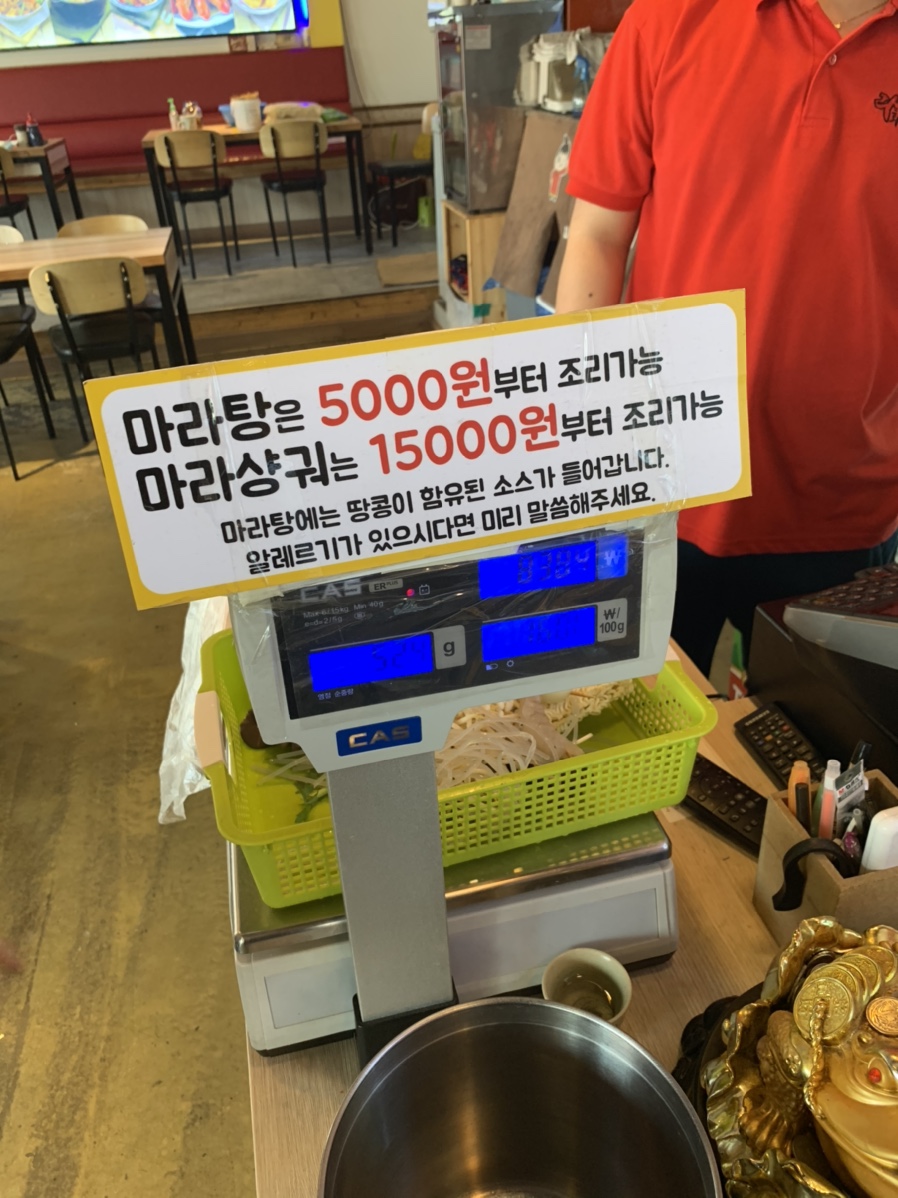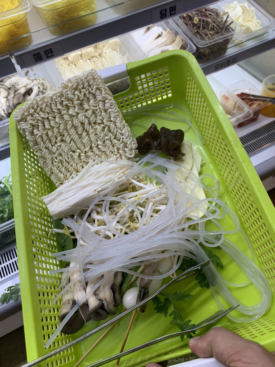 처음 방문한 식당이라, 어떻게 주문해야 할지 몰라서 두리번 걸렸는데!! 우선 마라탕은 준비된 셀프바에서 재료를 담으면 조리를 해주는 방식입니다. 개별적으로 식재료를 준비하지 않고 마라탕이라 주문해서 나오는 메뉴는 없더군요. 마라탕을 처음 먹어보는 사람에게는 재료 선택이 아닌 기본으로 준비된 마라탕이 있으면 좋겠더군요.(사실 마라탕이 어떤 식재료가 어울리는지 모르는데..... ) 샤부샤부 느낌이라 그래서 그런지는 모르겠으나^^