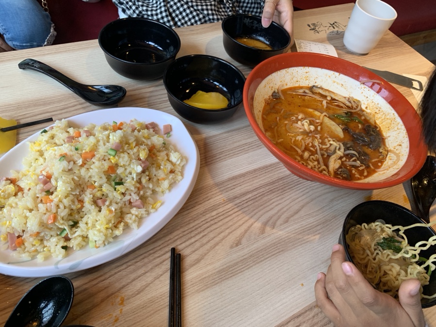 다양한 식재료를 담아 끓여주는 마라탕은.... 라면사리 선택으로 비싼 라면이 되어버렸네요. 맛도 향신료가 들어간 라면?! 딱히 맛있다고 이야기할 정도는 아니지만.... 한 번 정도 먹어볼 음식이네요. 볶은밥은 무난히 먹을만했습니다.