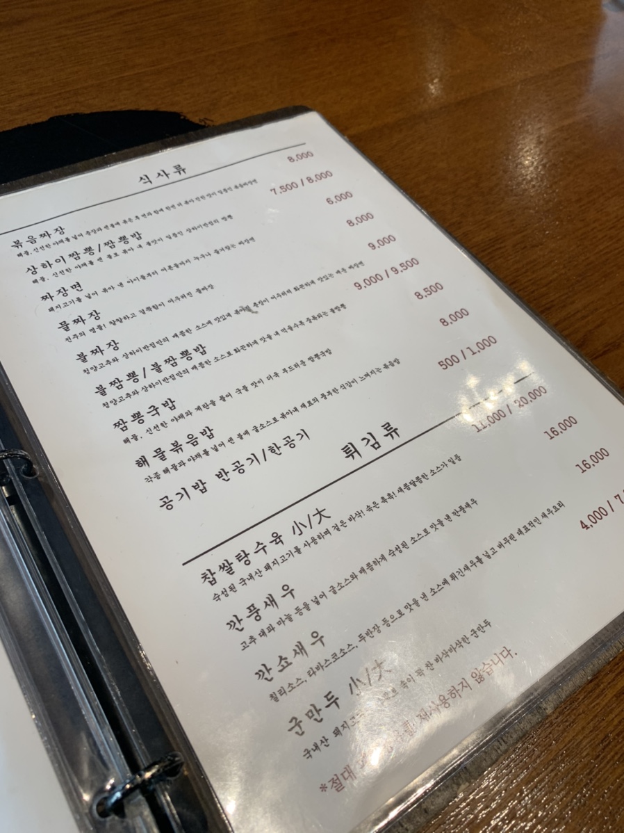 짬뽕이 7,500원으로 공깃밥이 안 나왔으면 비싼 느낌이 들었을 덴데, 공깃밥 포함해 7,500원으로 무난한 가격대입니다. 맛도 기본은 하는 중식당이네요. 다른 테이블의 볶음 짜장면이 맛있어 보이더군요. 다음 방문 시에는 볶음 짜장을 주문해야겠네요.