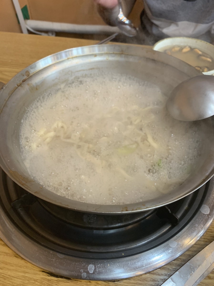 해물로 우려낸 육수로 칼국수를 끓여 먹는데, 칼국수 면은 내가 좋아하는 스타일은 아니더군요. 면이 쫄깃하기보다는 뚝뚝 끊어지는 면발이라서! 칼국수 면은 좀 쫄깃하면 좋겠더군요. 칼국수는 함께 나온 배추김치와 잘 어울려서 나름 괜찮았습니다.